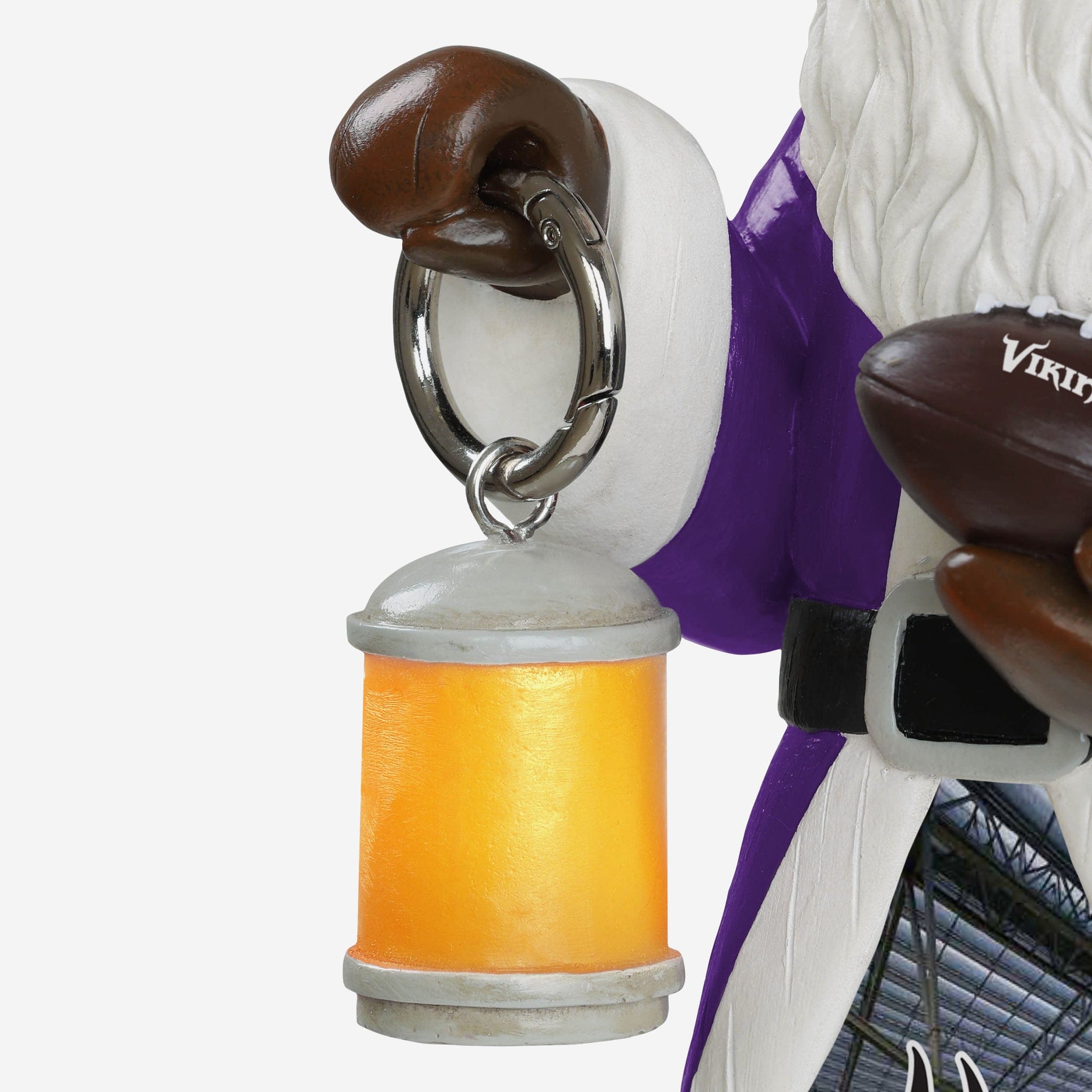 - Portrays Santa Claus holding a lantern and a football, ready to make gameday shine
