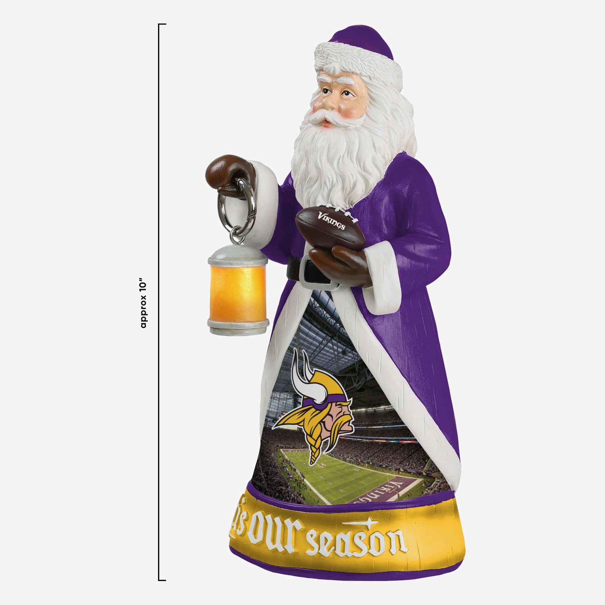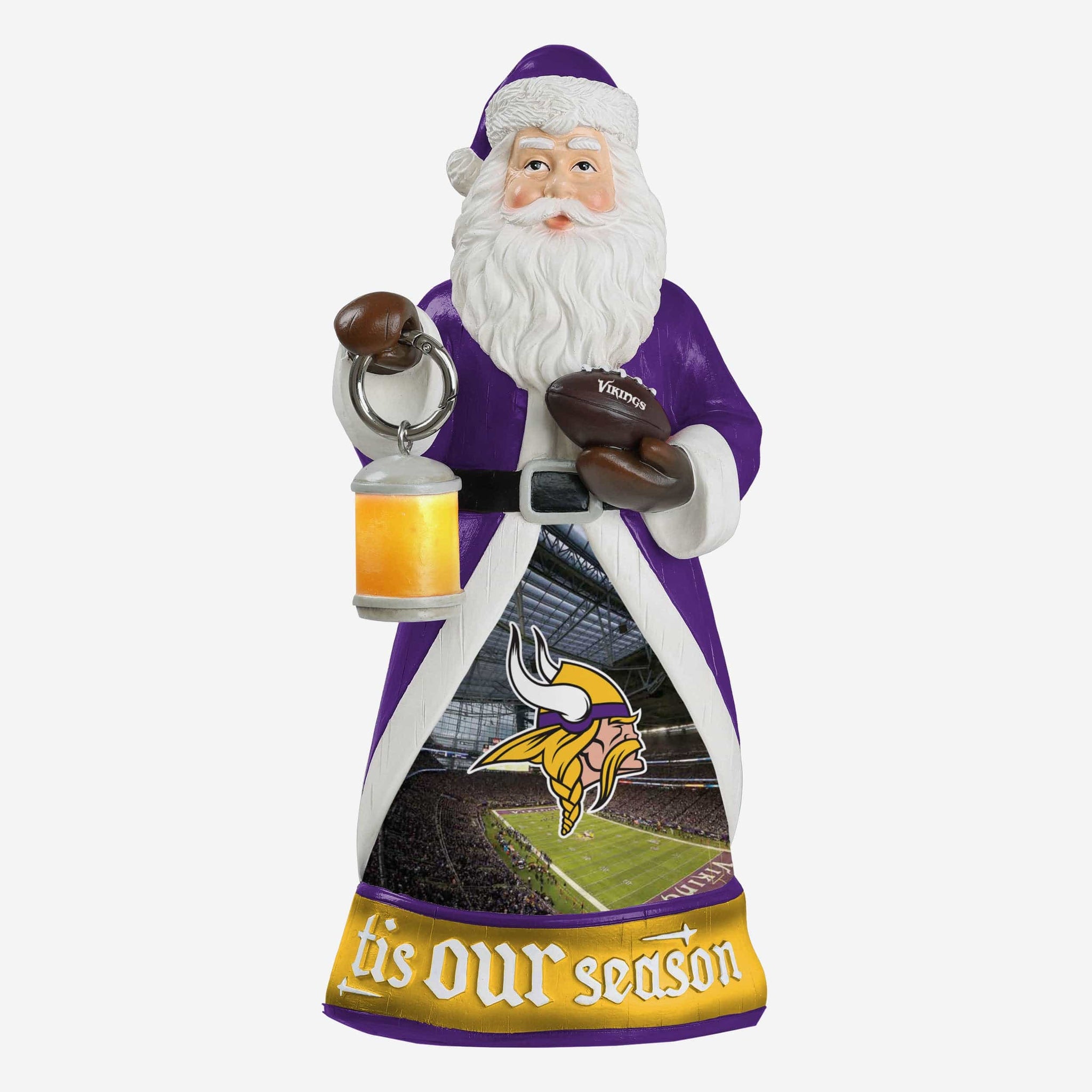 Santa is here to light the way to holiday team spirit! Everyone will know 'tis OUR season when you've got this Minnesota Vikings Santa Figure with Light Up Lantern on display!