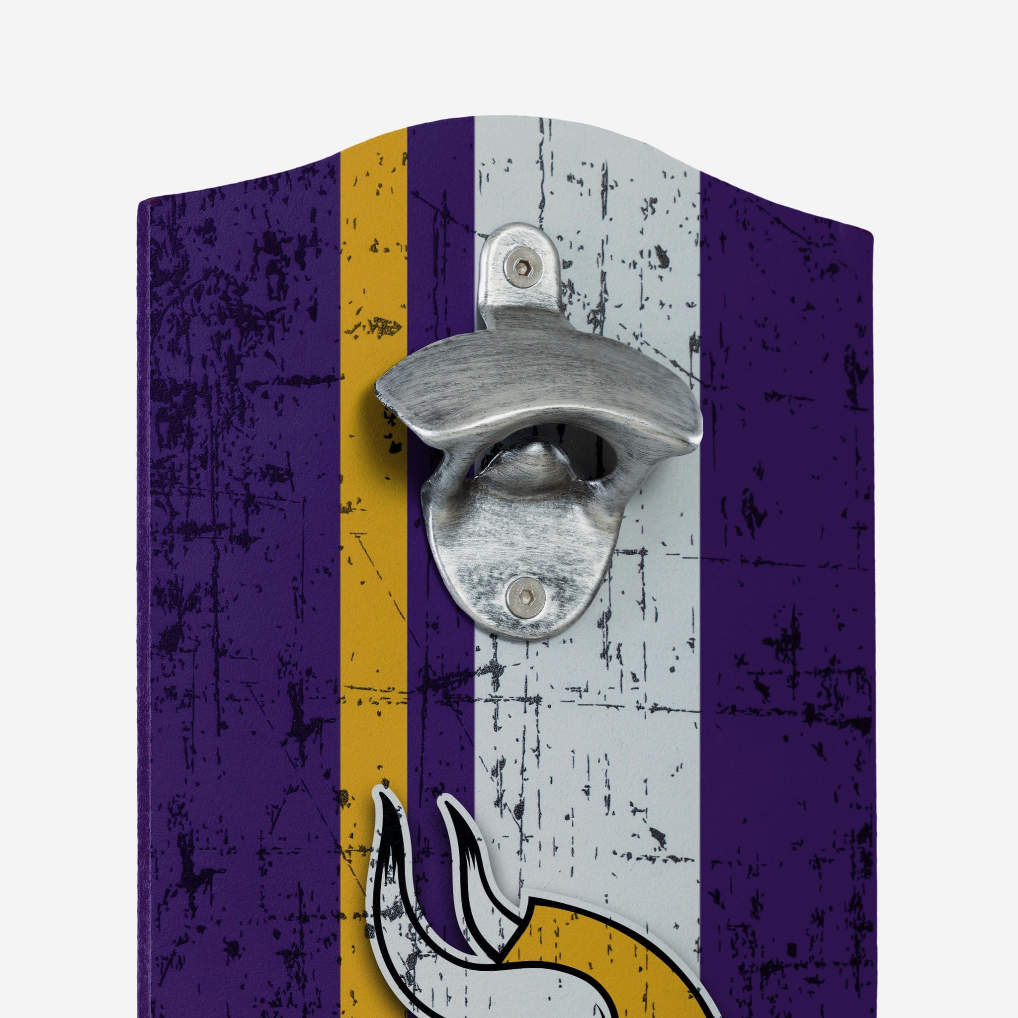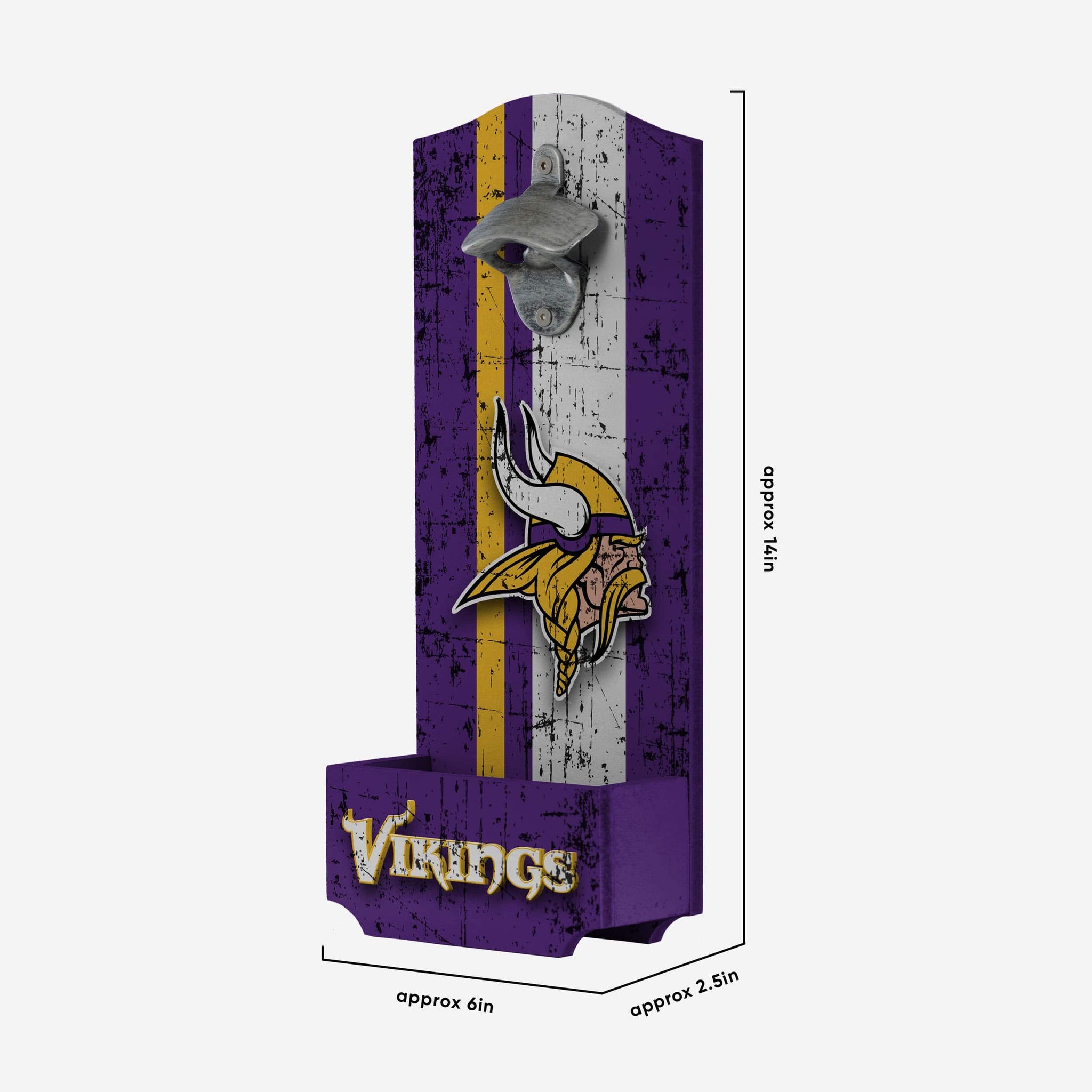 Don't miss a second of the action on gameday. Just use this Minnesota Vikings Wooden Bottle Cap Opener Sign to crack open another cold one and focus on watching your team dominate!