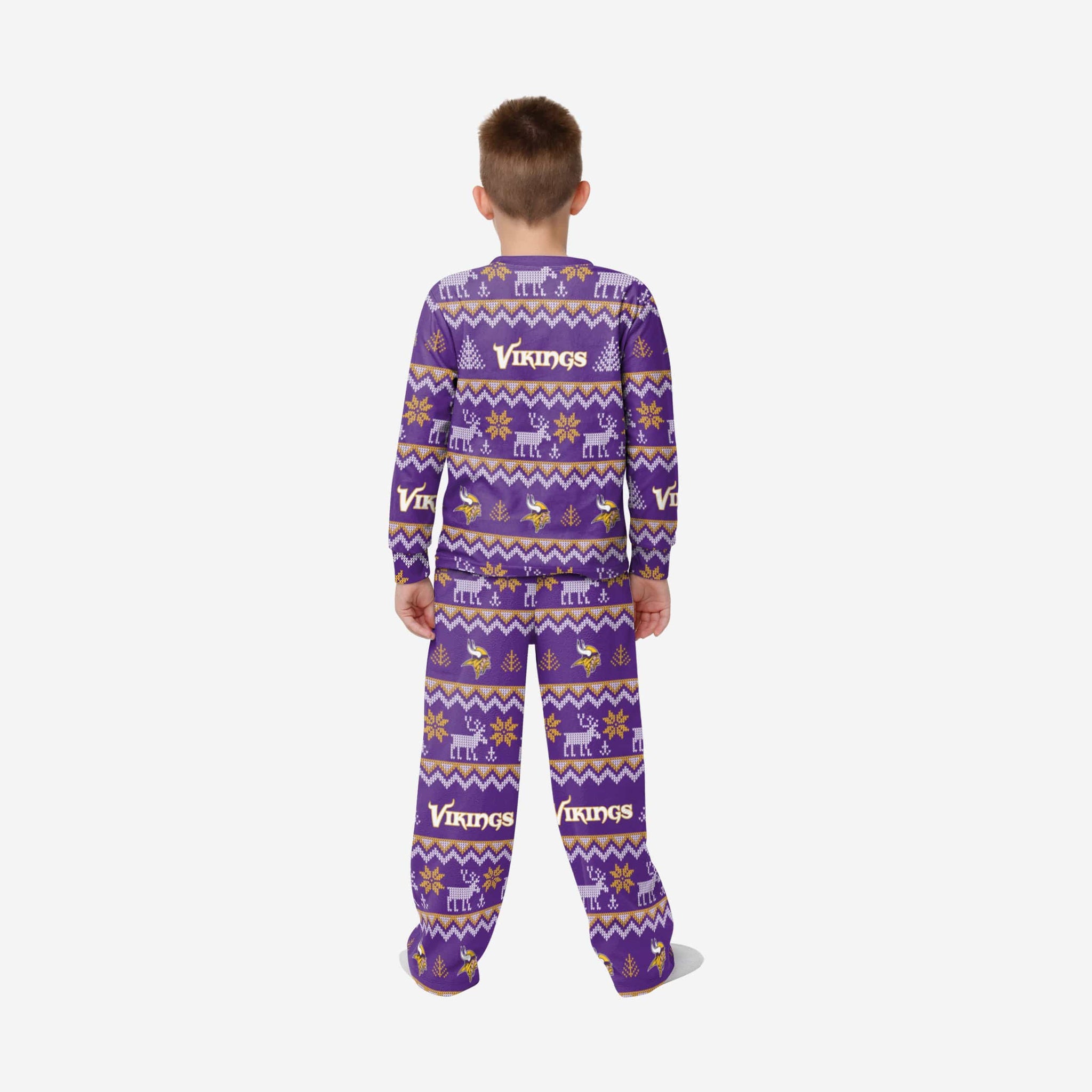 Get some matching family pajamas and dress to impress this holiday season! You won't want to miss these kids' team pajamas! These youth PJ's are comfortable and show off your team spirit in the form of some sweet youth jammies. Introducing the Minnesota Vikings Youth Ugly Pattern Family Holiday Pajamas! Don't forget to take your holiday photo with the whole family wearing matching Christmas pajamas!