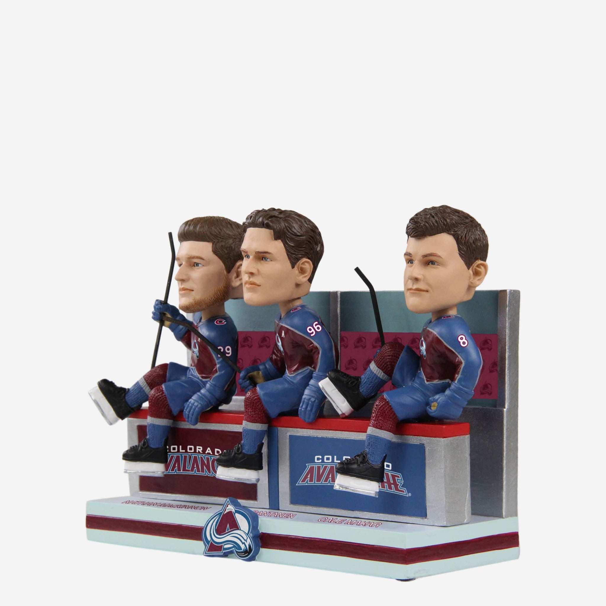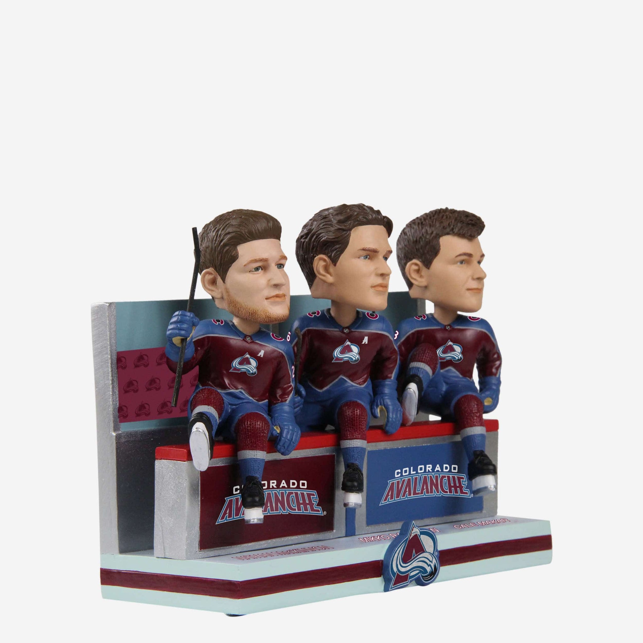 They say good things come in threes. This bobble is proof. Hop over the boards and into the game with this Nathan MacKinnon & Cale Makar & Mikko Rantanen Colorado Avalanche Line Change Triple Bobblehead.