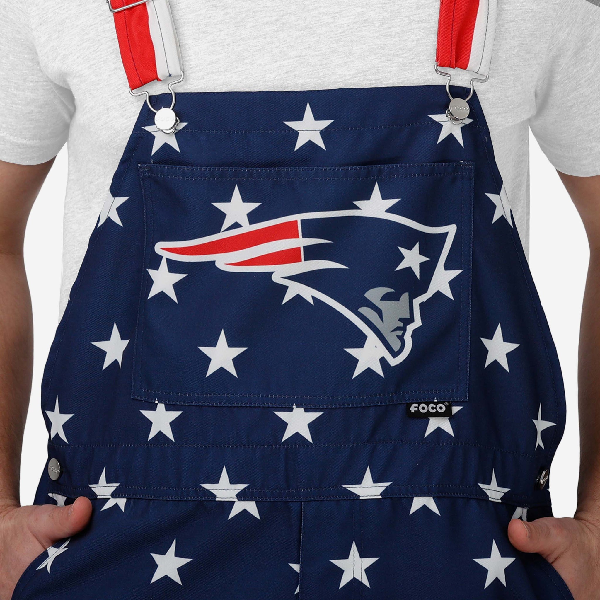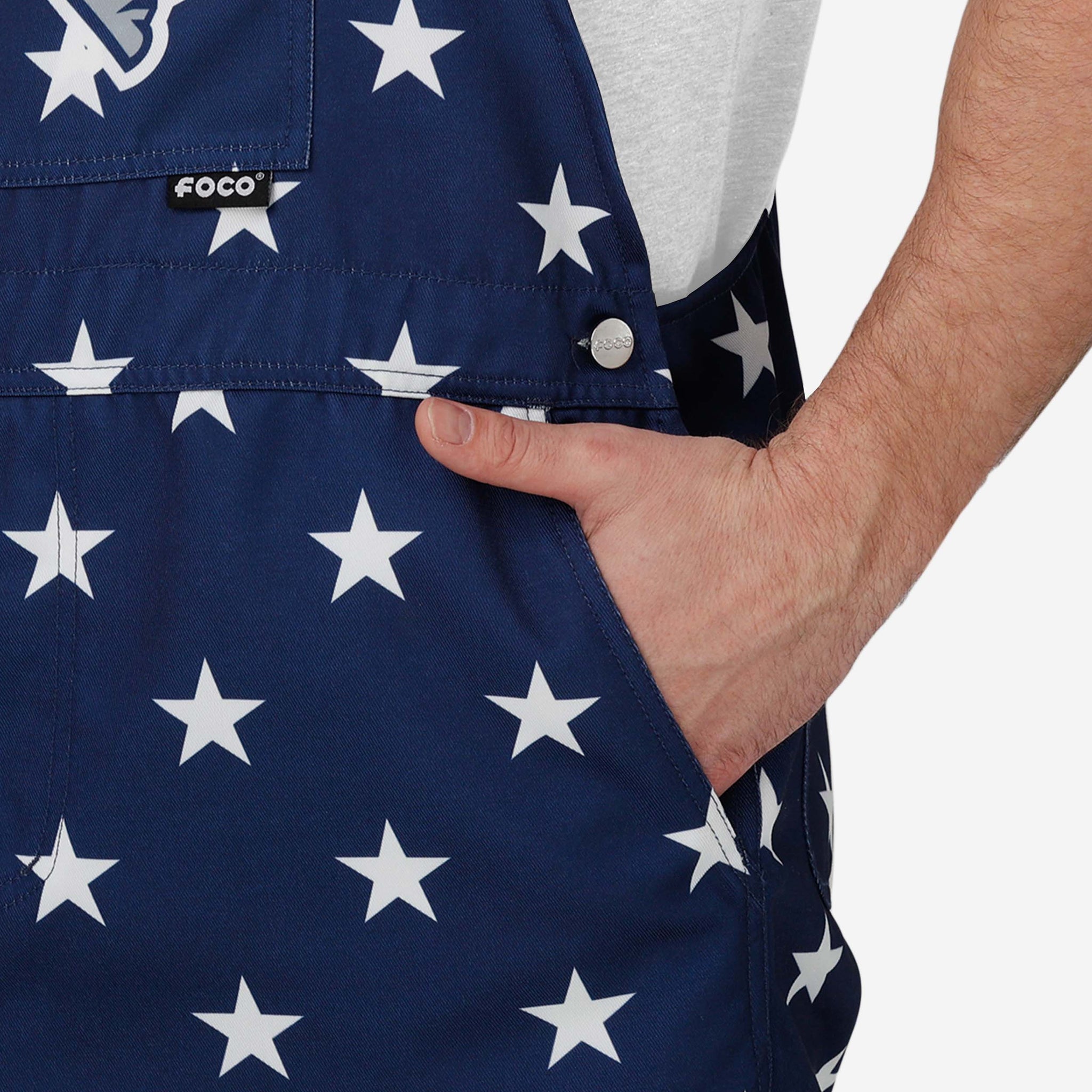 - All-over team-colored design: These shortalls are covered in the official New England Patriots colors and patterns, so you can show your team spirit with pride.