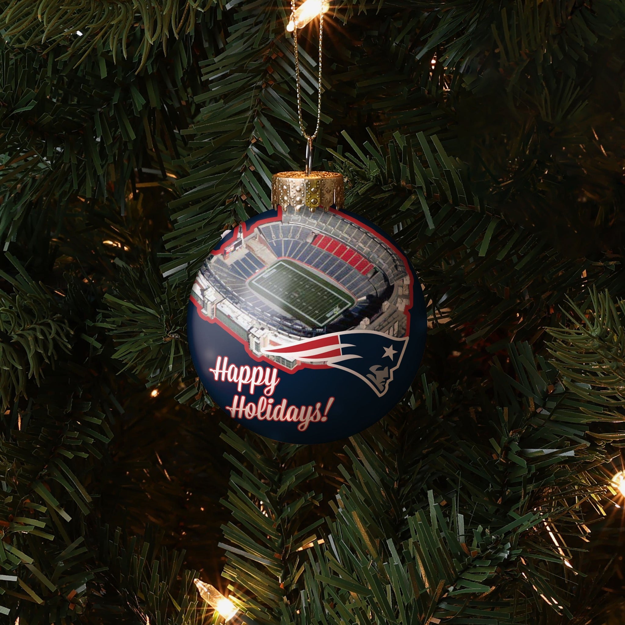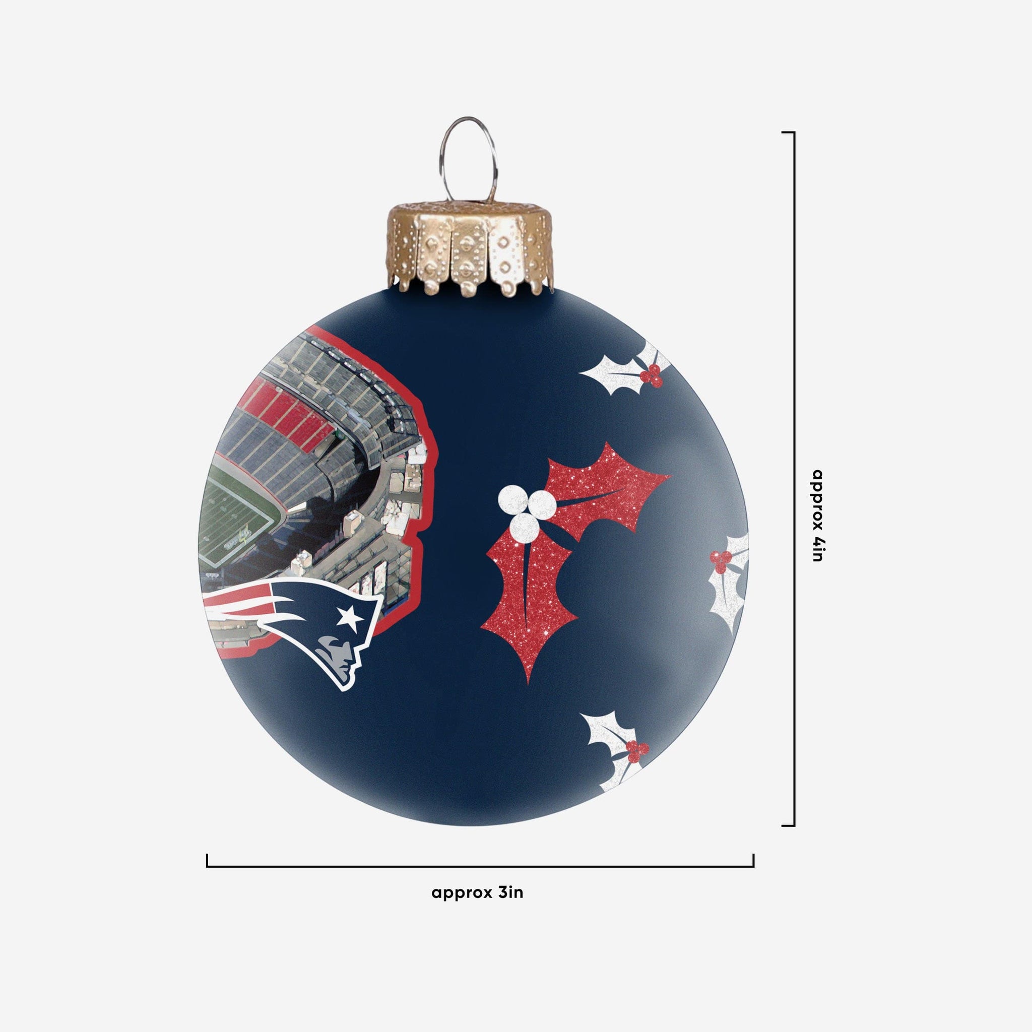 Bring some home field advantage to your home for the holidays. Now every day will feel like gameday during the holidays with this New England Patriots Stadium Print Glass Ball Ornament on display!