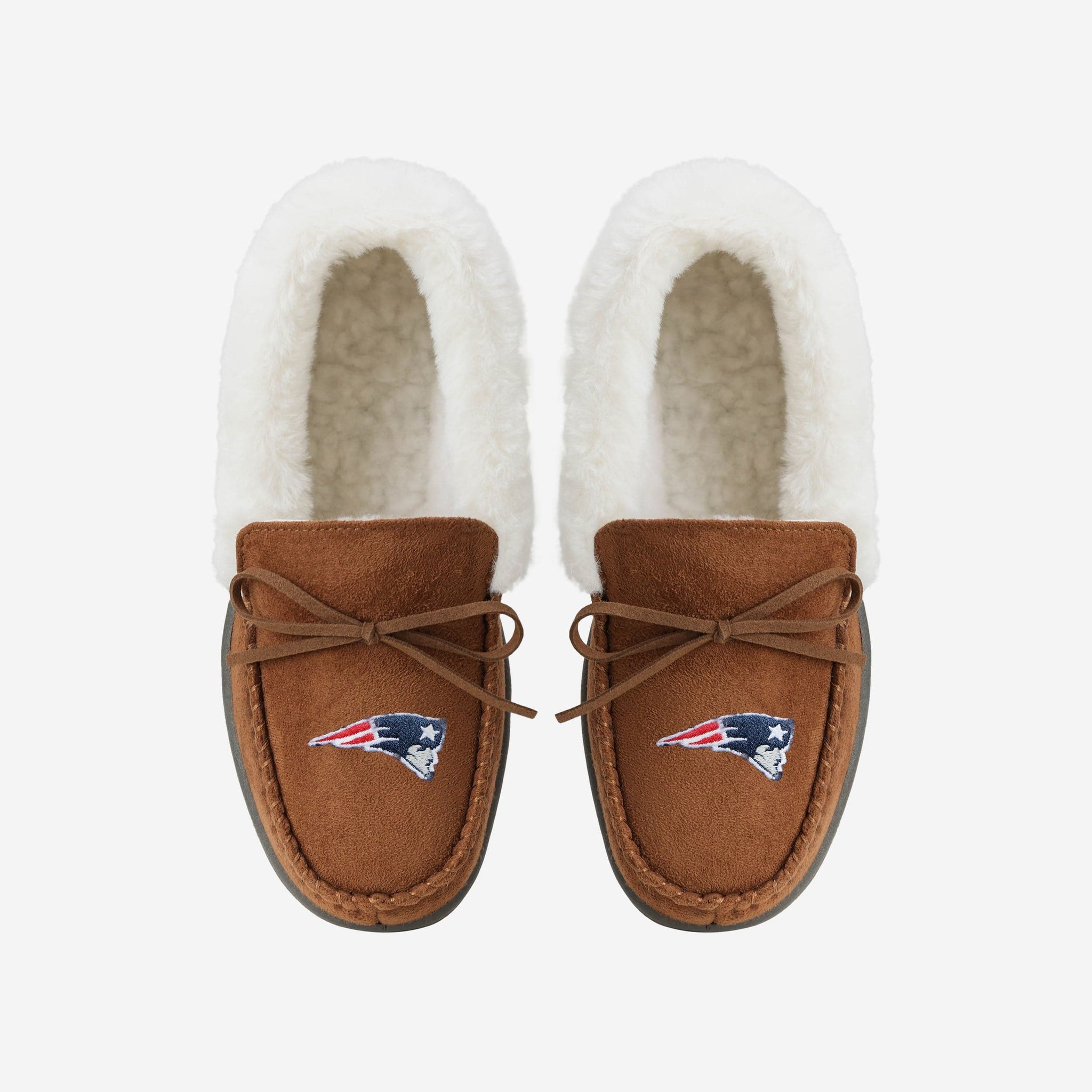 New England Patriots Womens Tan Moccasin Slipper FOCO S - FOCO.com