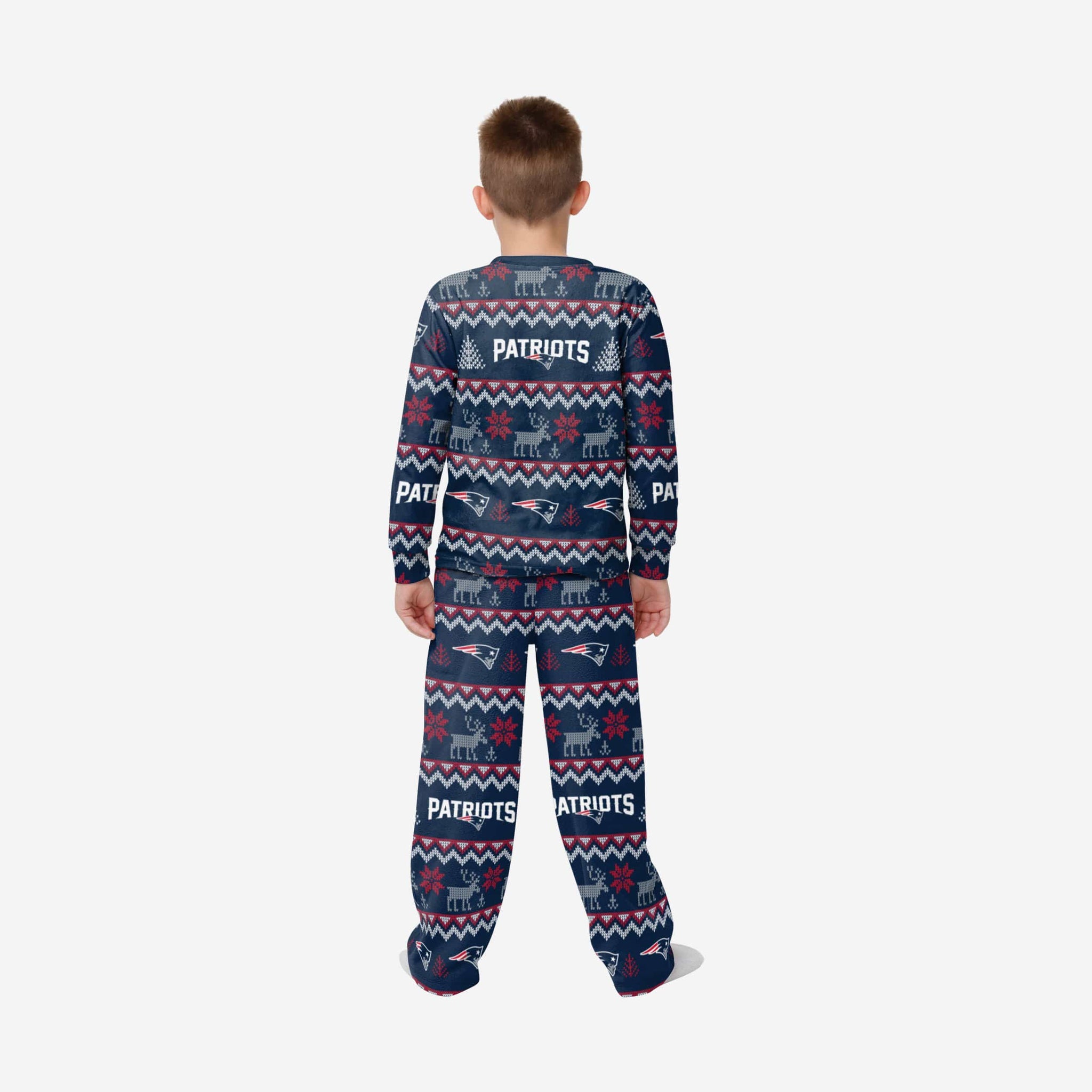 New England Patriots Youth Ugly Pattern Family Holiday Pajamas FOCO - FOCO.com