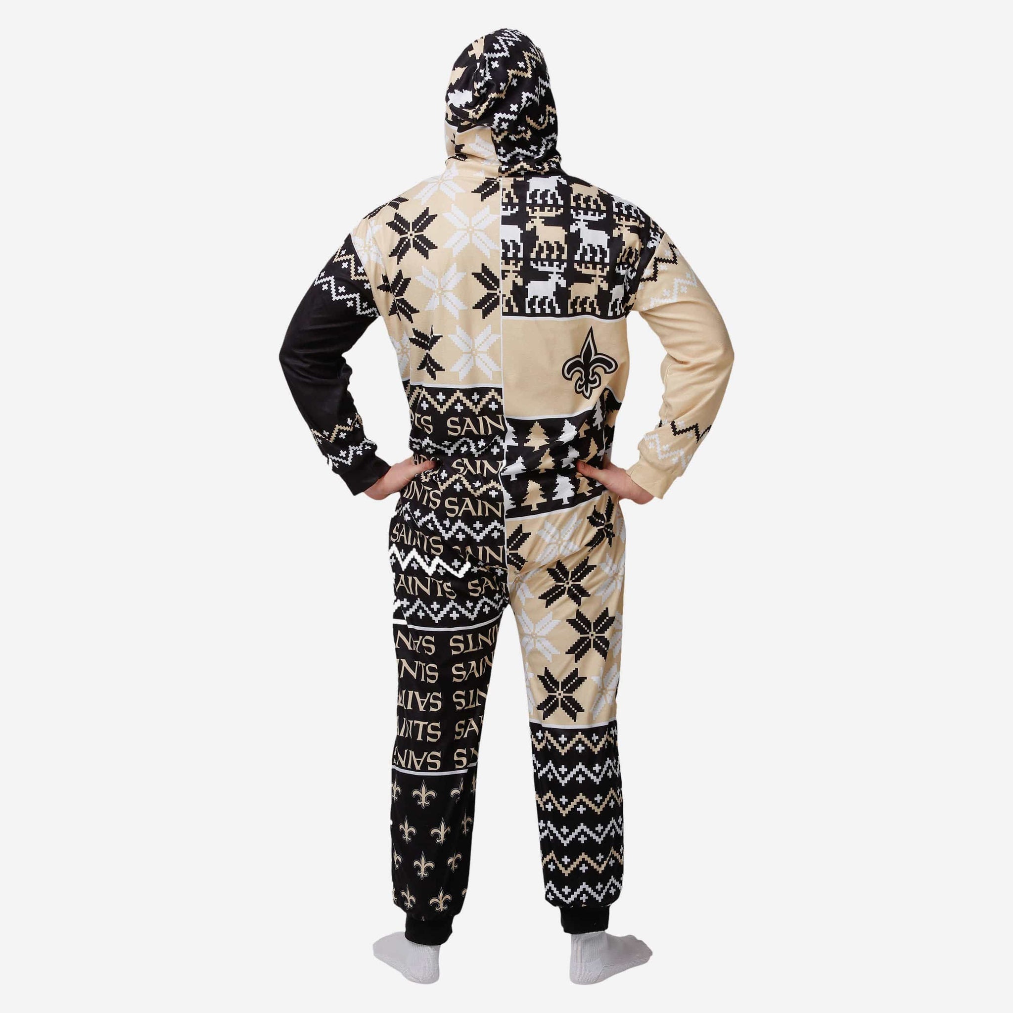 Get some matching family pajamas and dress to impress this holiday season! You won't want to miss these onesie team pajamas! These men's and women's PJ's are comfortable and show off your team spirit in the form of some sweet one piece jammies. Introducing the New Orleans Saints Busy Block Family Holiday One Piece Pajamas! Don't forget to take your holiday photo with the whole family wearing matching Christmas pajamas!