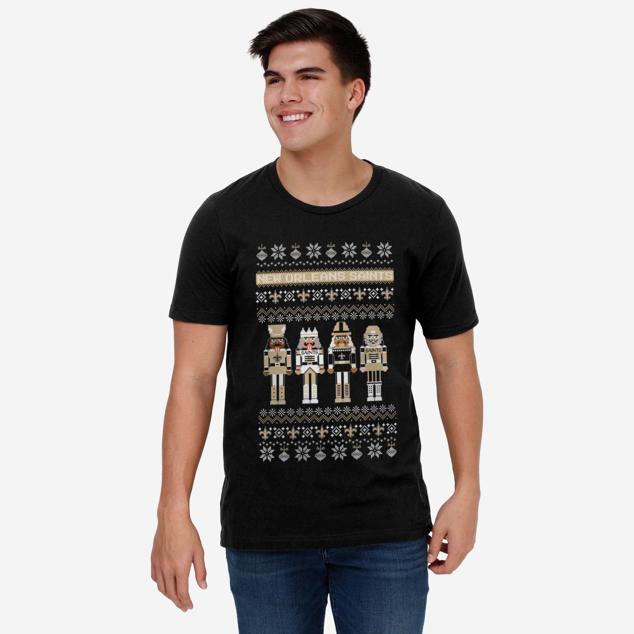 Get ready to get festive with your favorite team. Crack into the holiday spirit with the New Orleans Saints Holiday Nutcracker Sweater T-Shirt.