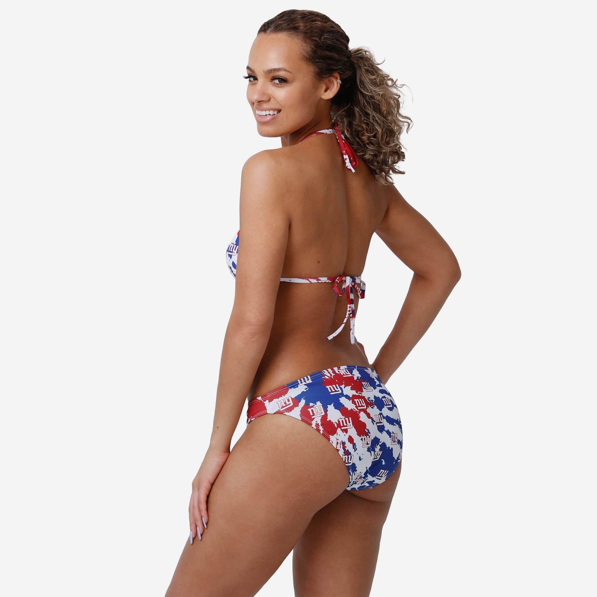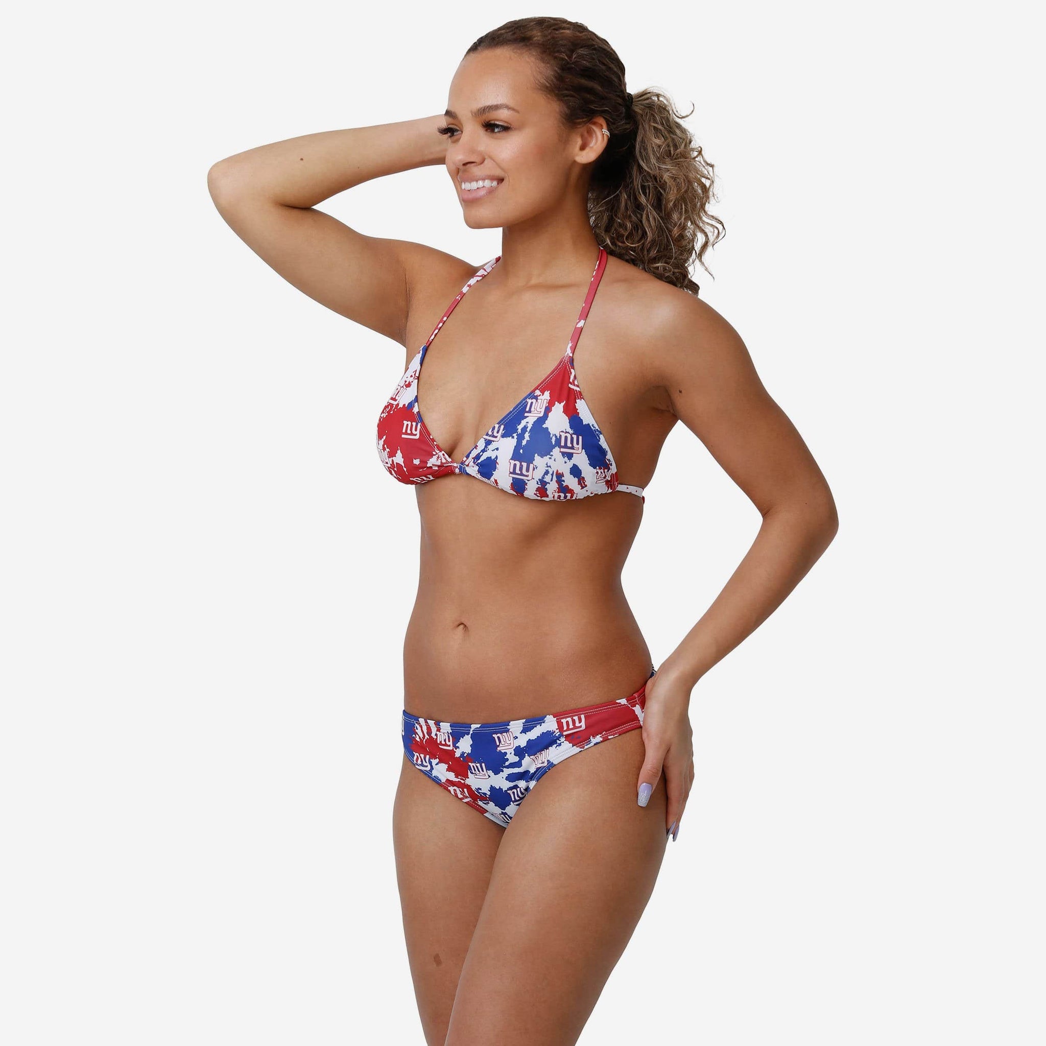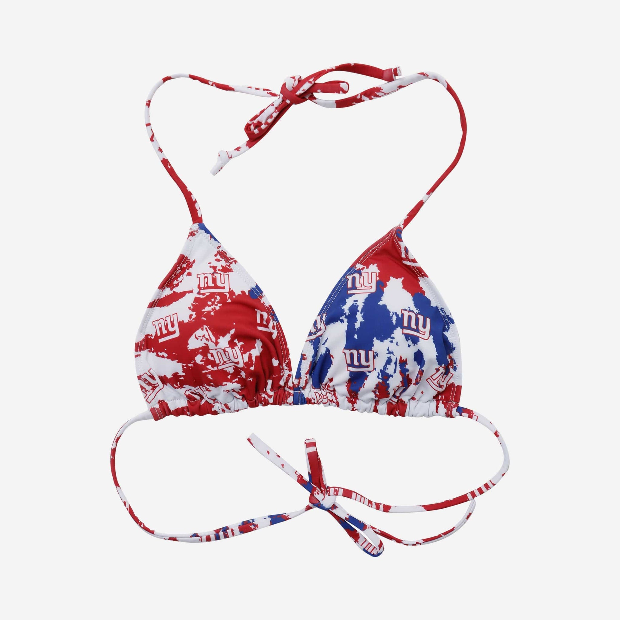 Lounging around on a summer day? Make sure everyone knows your fandom doesn't take a vacation by wearing this New York Giants Women's Paint Splash Bikini Top!