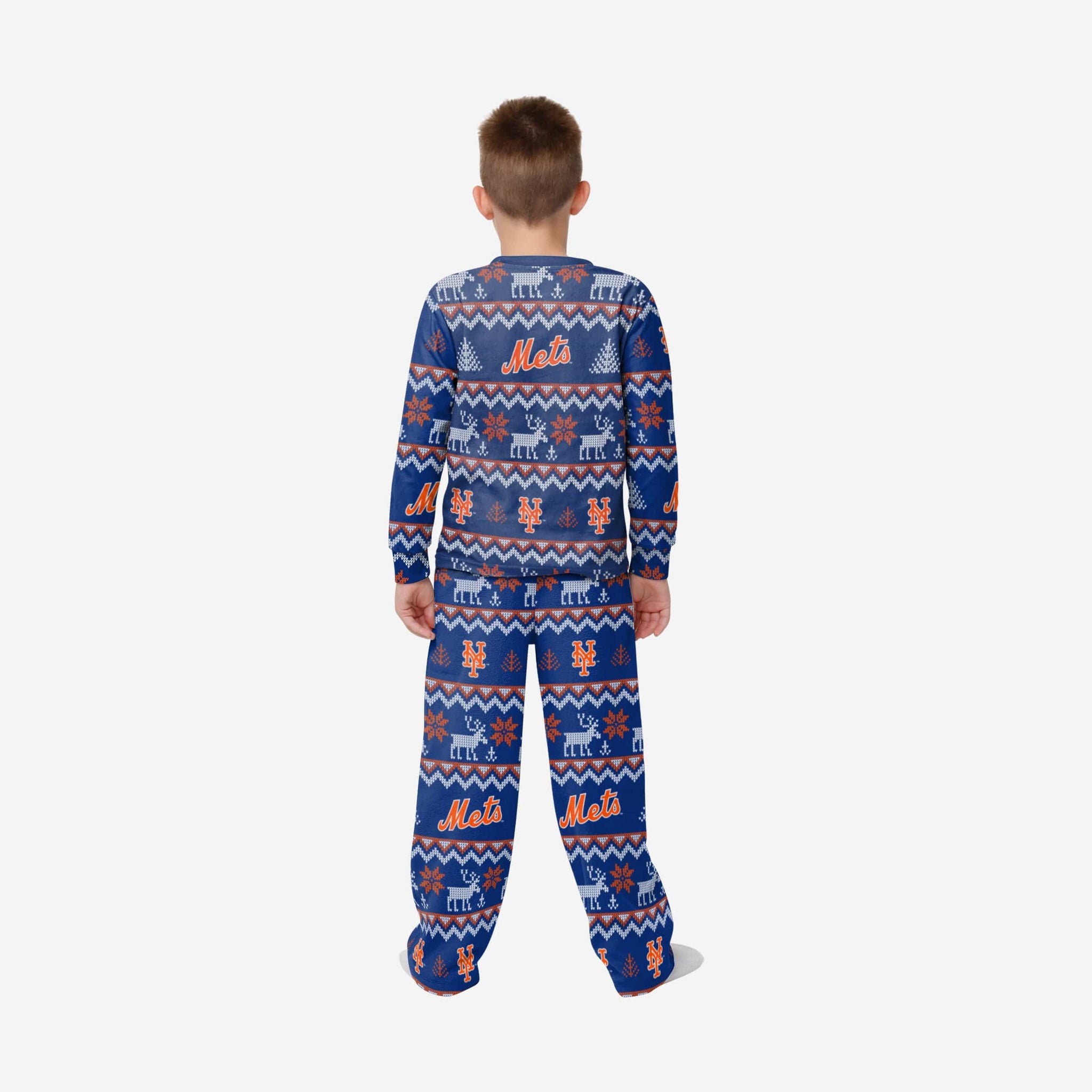Get some matching family pajamas and dress to impress this holiday season! You won't want to miss these kids' team pajamas! These youth PJ's are comfortable and show off your team spirit in the form of some sweet youth jammies. Introducing the New York Mets Youth Ugly Pattern Family Holiday Pajamas! Don't forget to take your holiday photo with the whole family wearing matching Christmas pajamas!