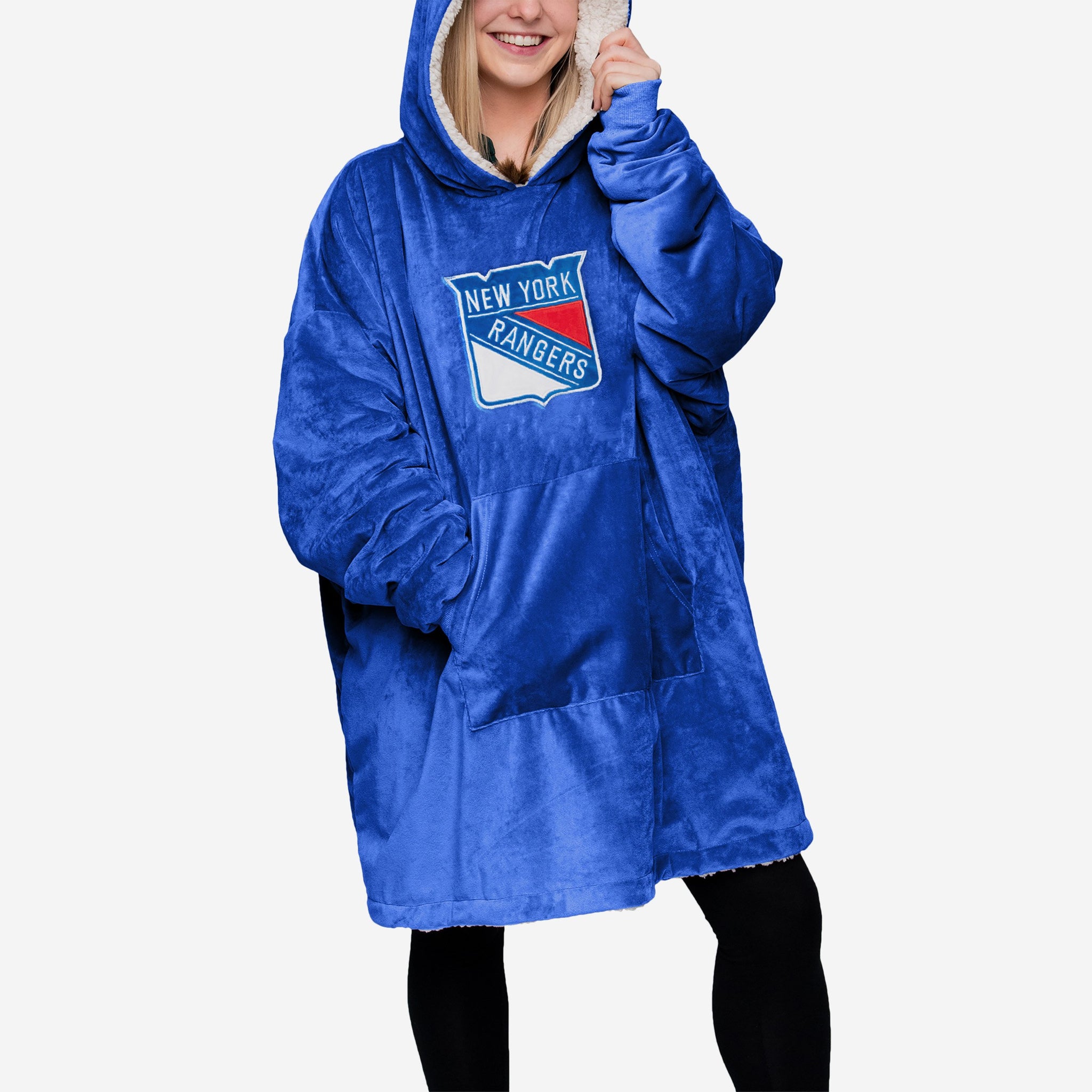 Choosing between showing off your team spirit, looking good, and enjoying some elite relaxation is a tough decision. Borderline impossible. Good news. You don't have to choose. Because you can enjoy that triple threat of fan awesome when you rock this New York Rangers Reversible Big Logo Hoodeez.