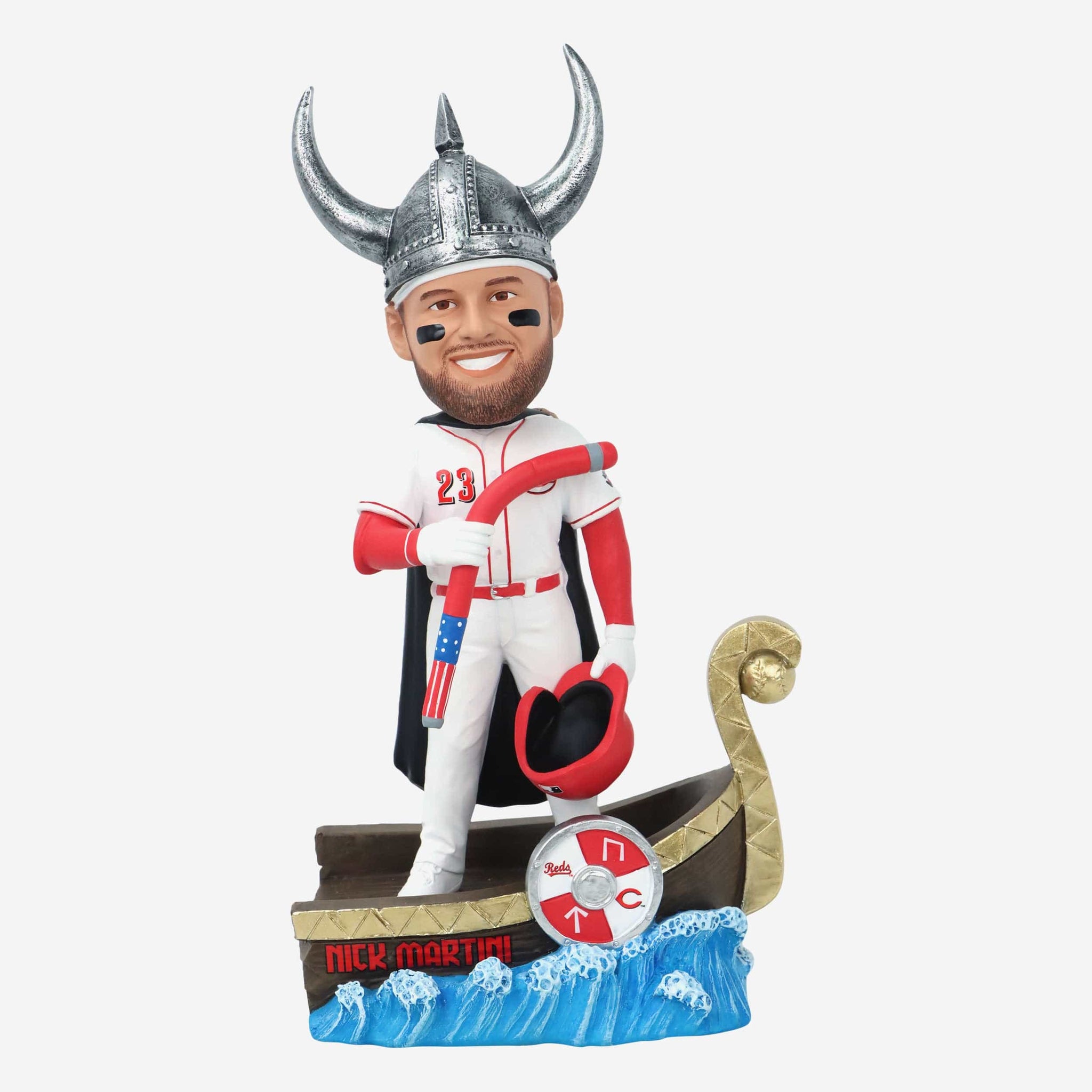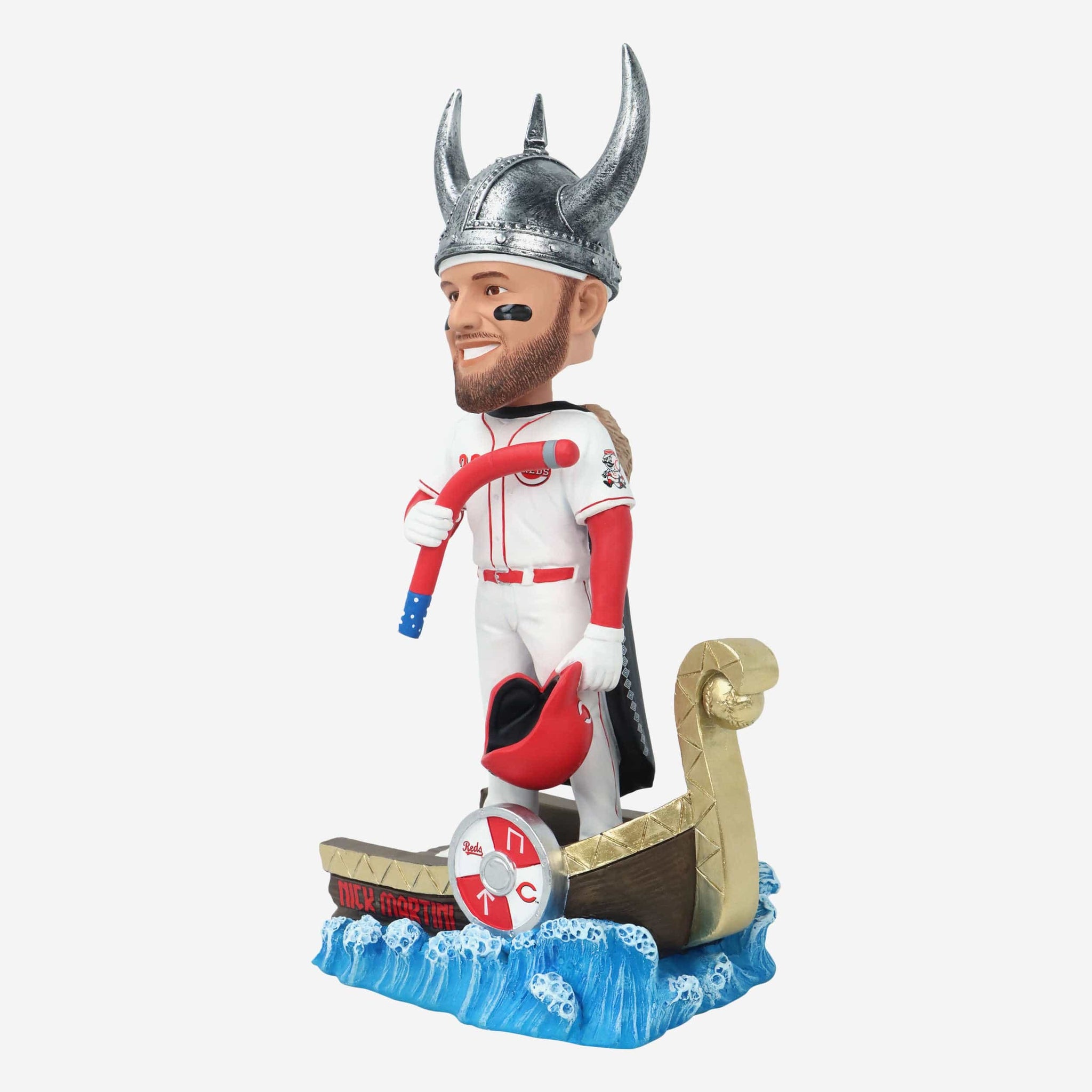 A home run celebration fit for a Viking! Reap the rewards of this slugger’s conquest with the Nick Martini Cincinnati Reds Viking Hat Home Run Celebration Bobblehead.