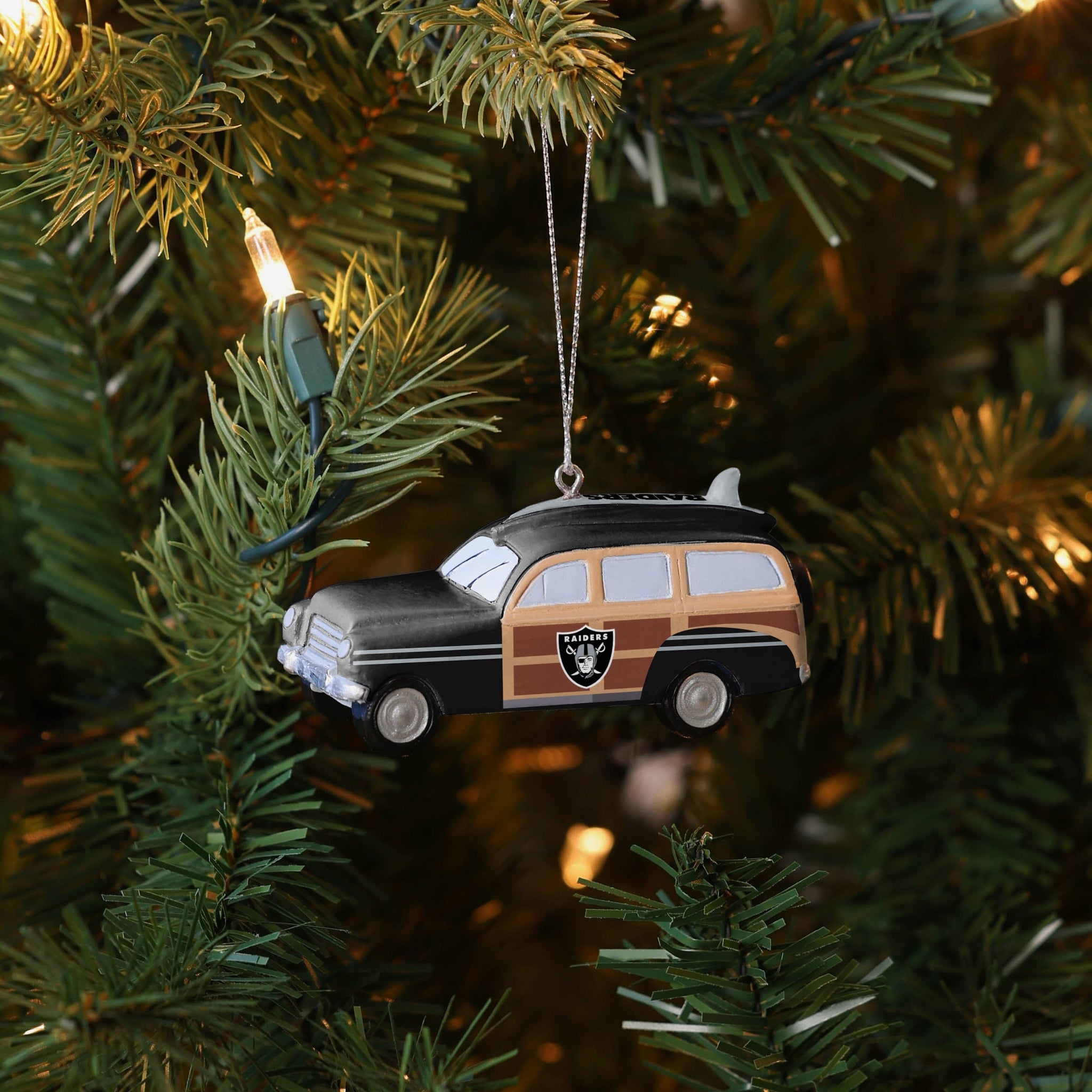 WARNING! Laying eyes on this Las Vegas Raiders Station Wagon Ornament on your tree may result in an uncontrollable desire to embark on a road trip down the coast.