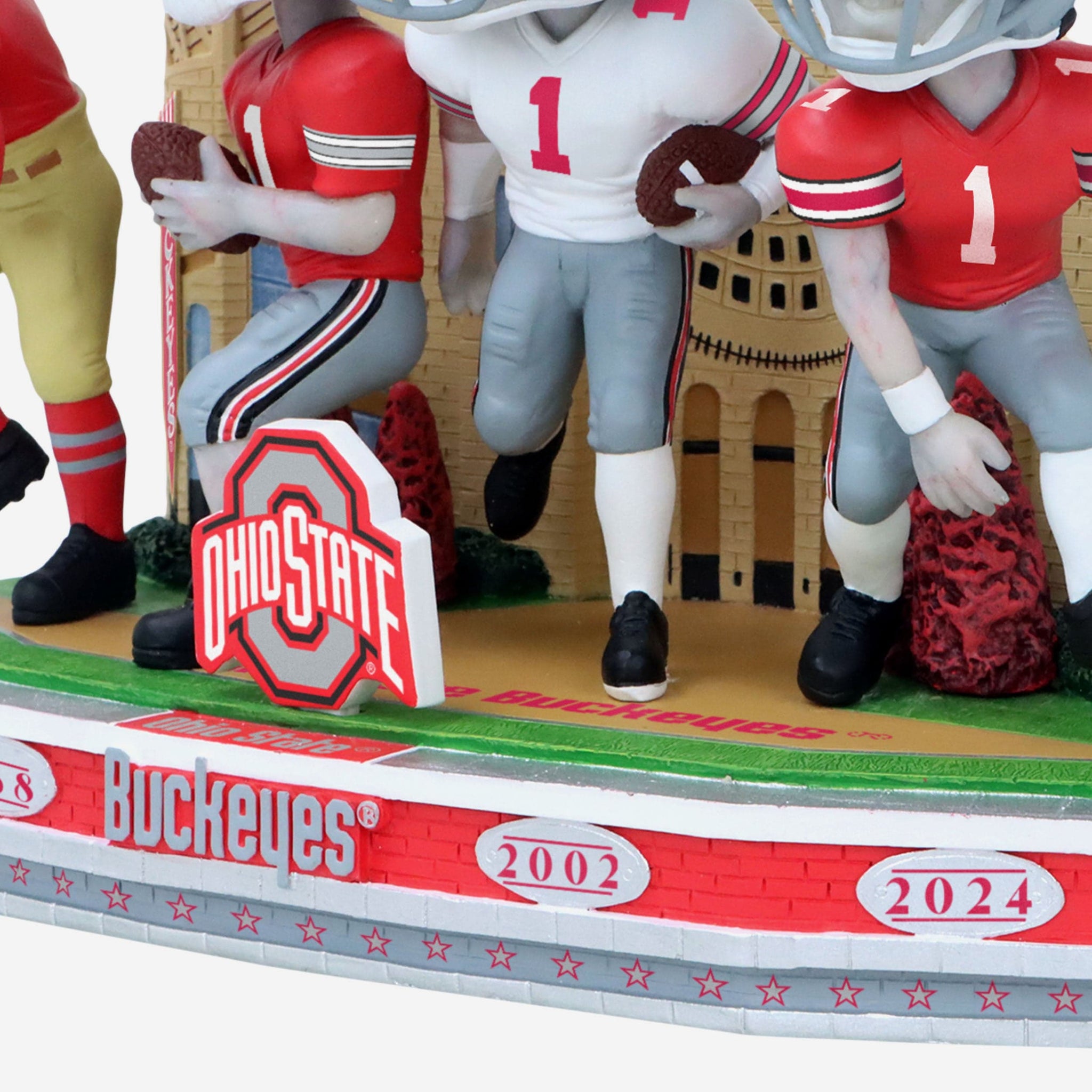 1917. 1968. 2002. 2024. Take a journey through time and relive the evolution of Buckeyes greatness with this Ohio State Buckeyes Football Uniform History Mini Bobblehead Scene.
