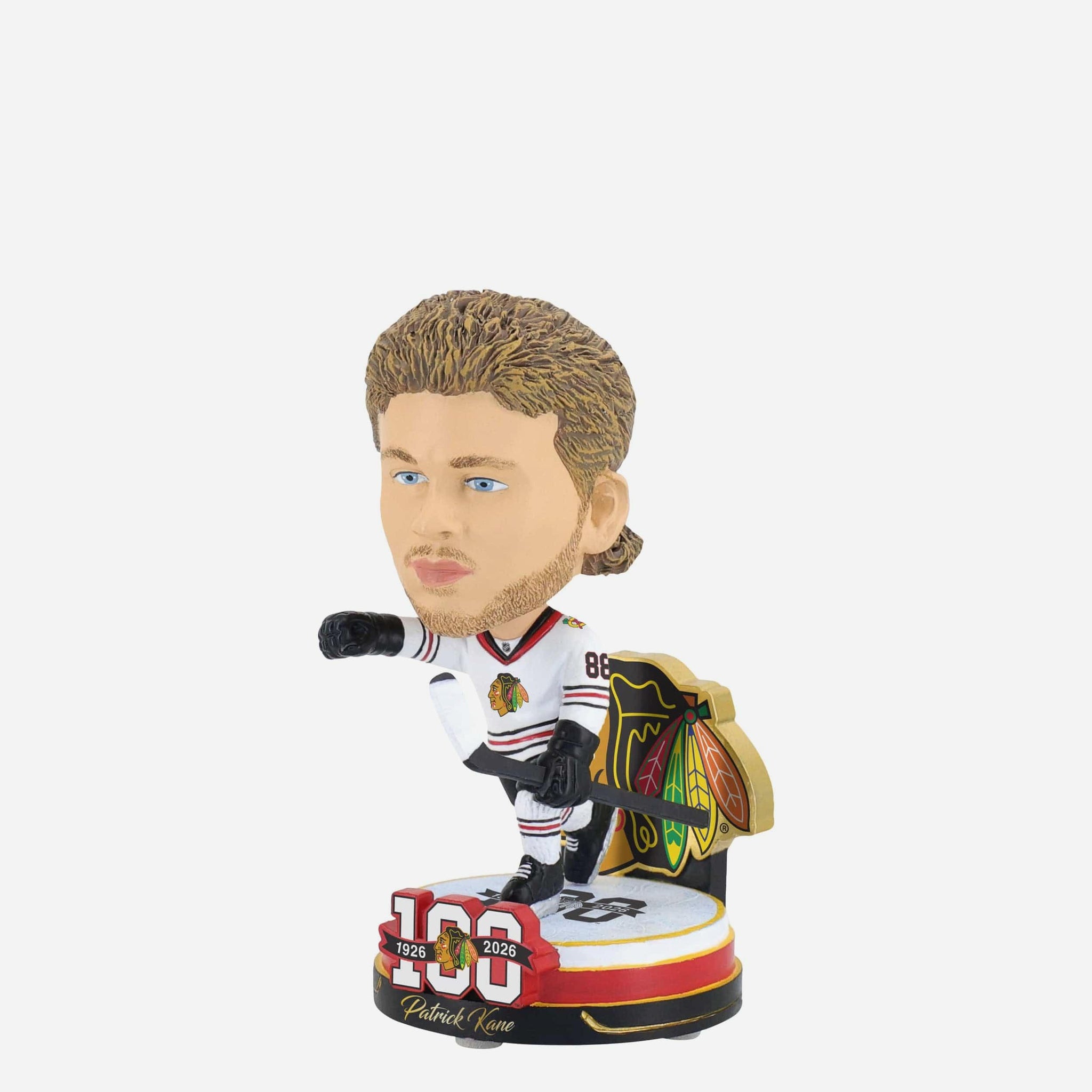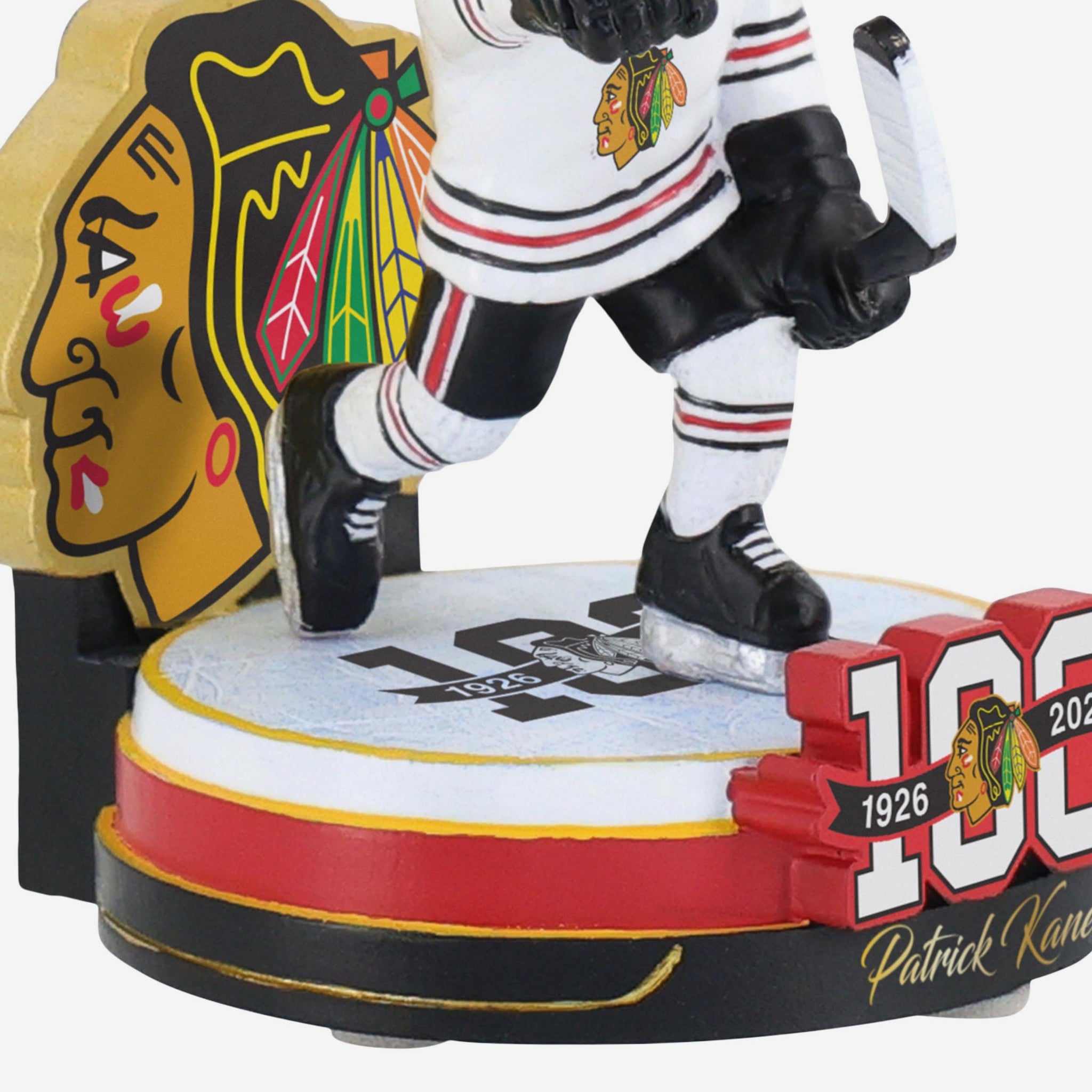 100 years of red, white, and black history. Celebrate a century of hockey in the Windy City with this Patrick Kane Chicago Blackhawks 100th Anniversary Mini Bighead Bobblehead.