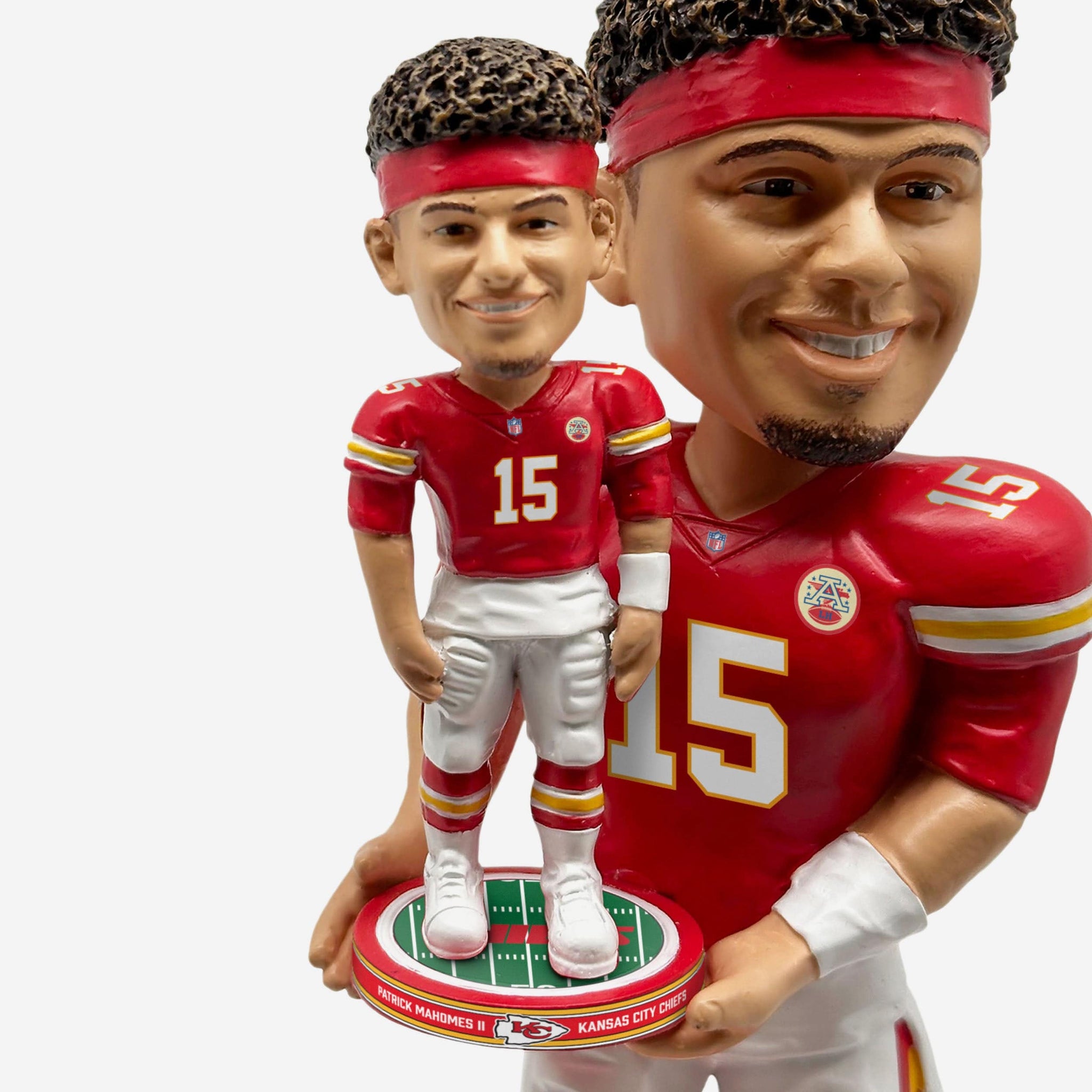 - Mahomes holding a miniature bobblehead version of himself, because a bobble holding a bobble is even cooler than a regular bobble