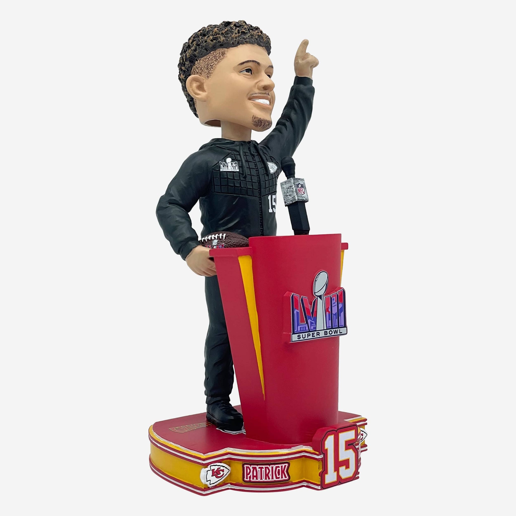 It’s time to kick off a “Super” week! Your collection will be dressed to face the press with the Patrick Mahomes Kansas City Chiefs Super Bowl LVIII Outfit Bobblehead.
