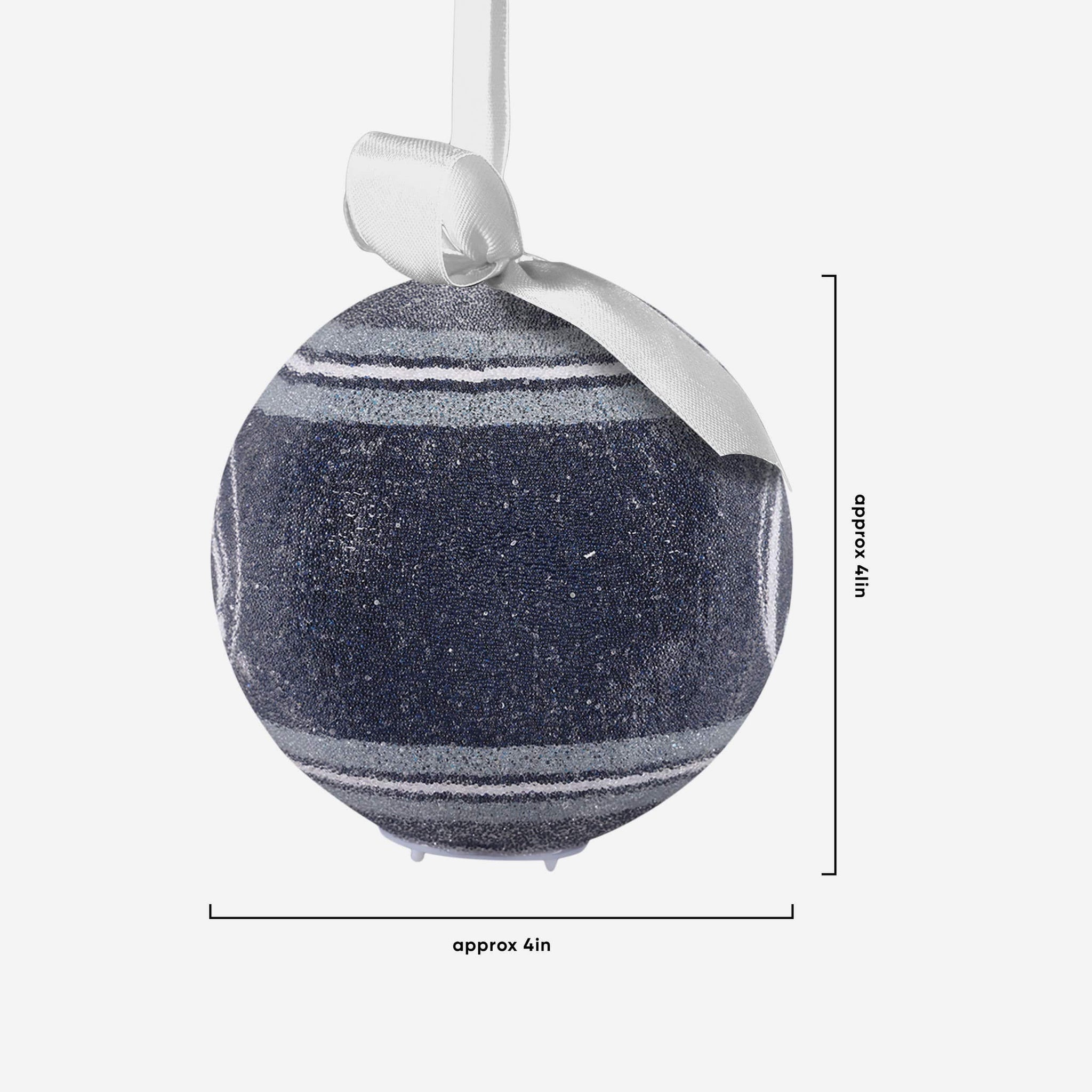 - Team-colored stripe accents on top and bottom of ornament to make your tree look extra awesome
