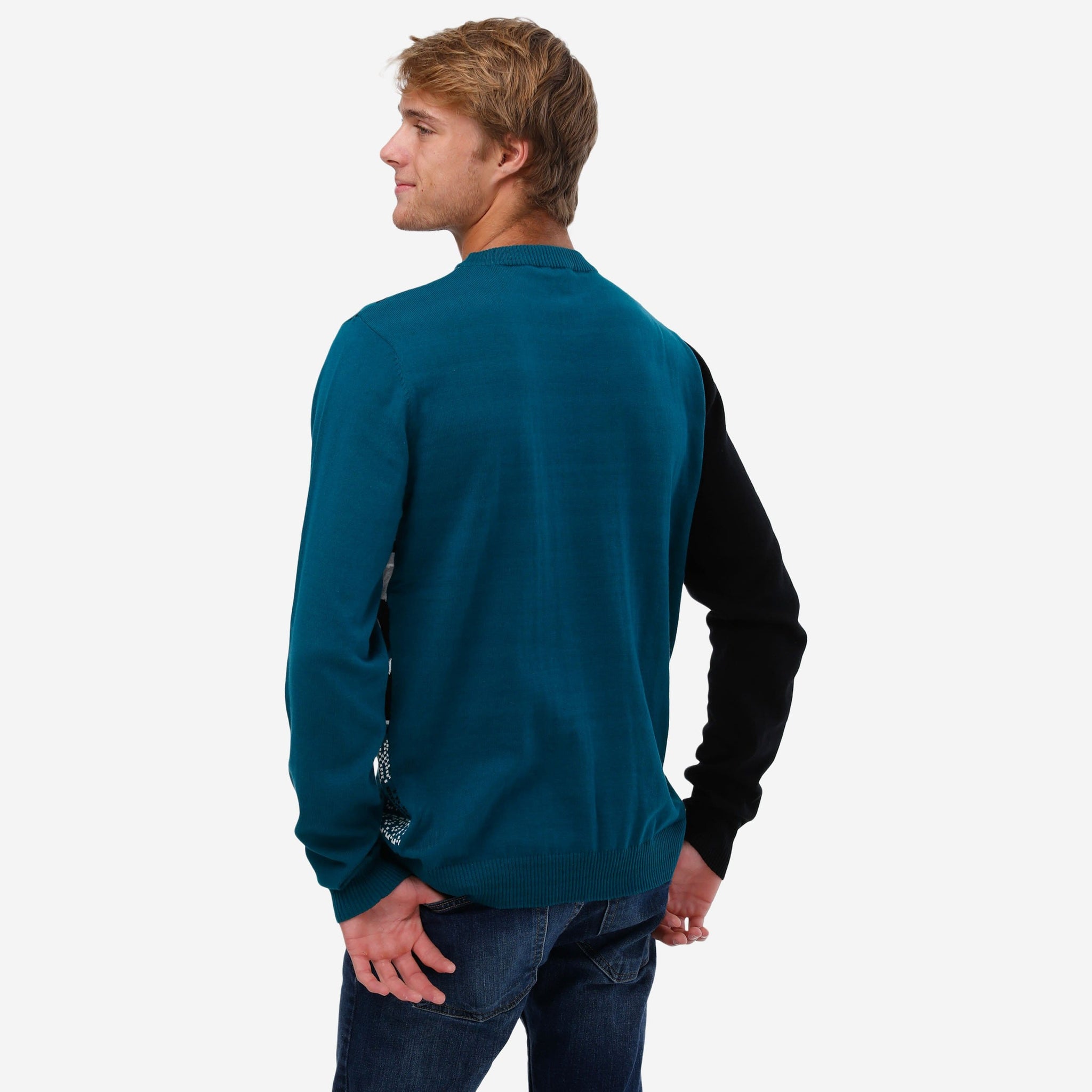 - Team-colored snowflake and tree accents throughout that will have you feeling like you're walking through a winter wonderland in this holiday sweater
