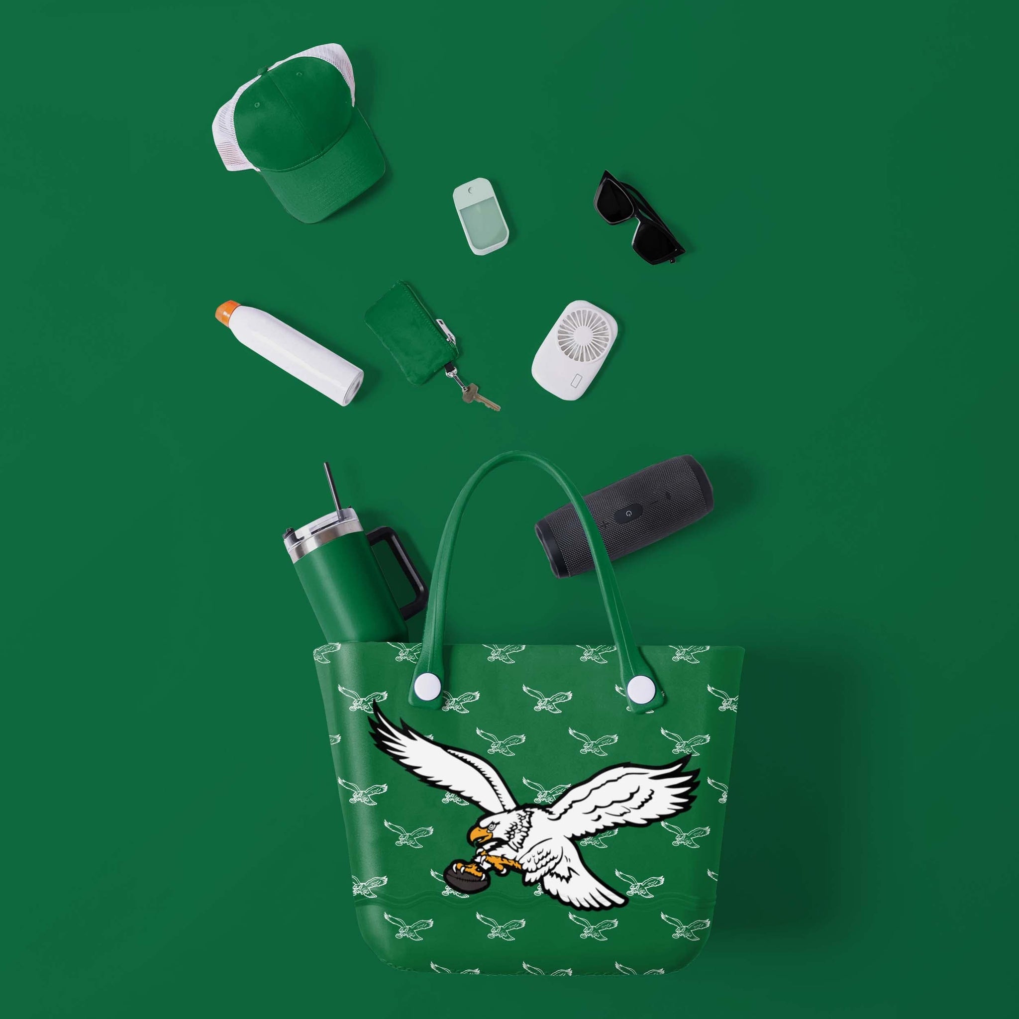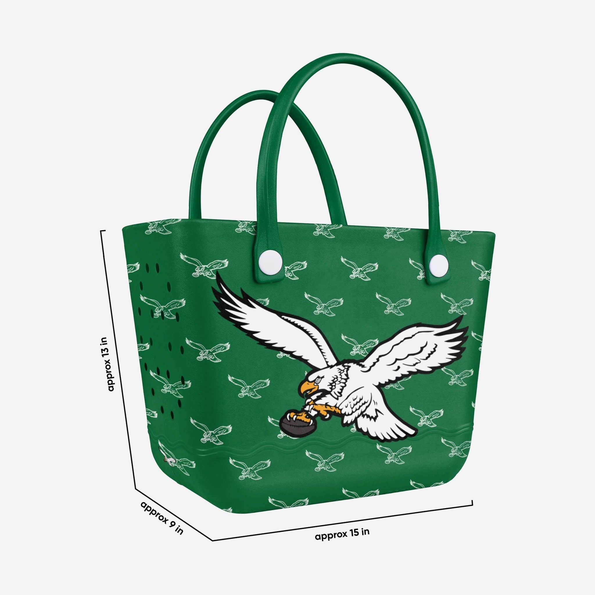 Looking for a bag as durable and dependable as your team spirit? You've found it. Whether you're running the tailgate, hitting the beach, or going on any adventure, pack up your fandom and take it on the go with this Philadelphia Eagles Kelly Green Big Logo Mini Print Tailgate Tote Bag.