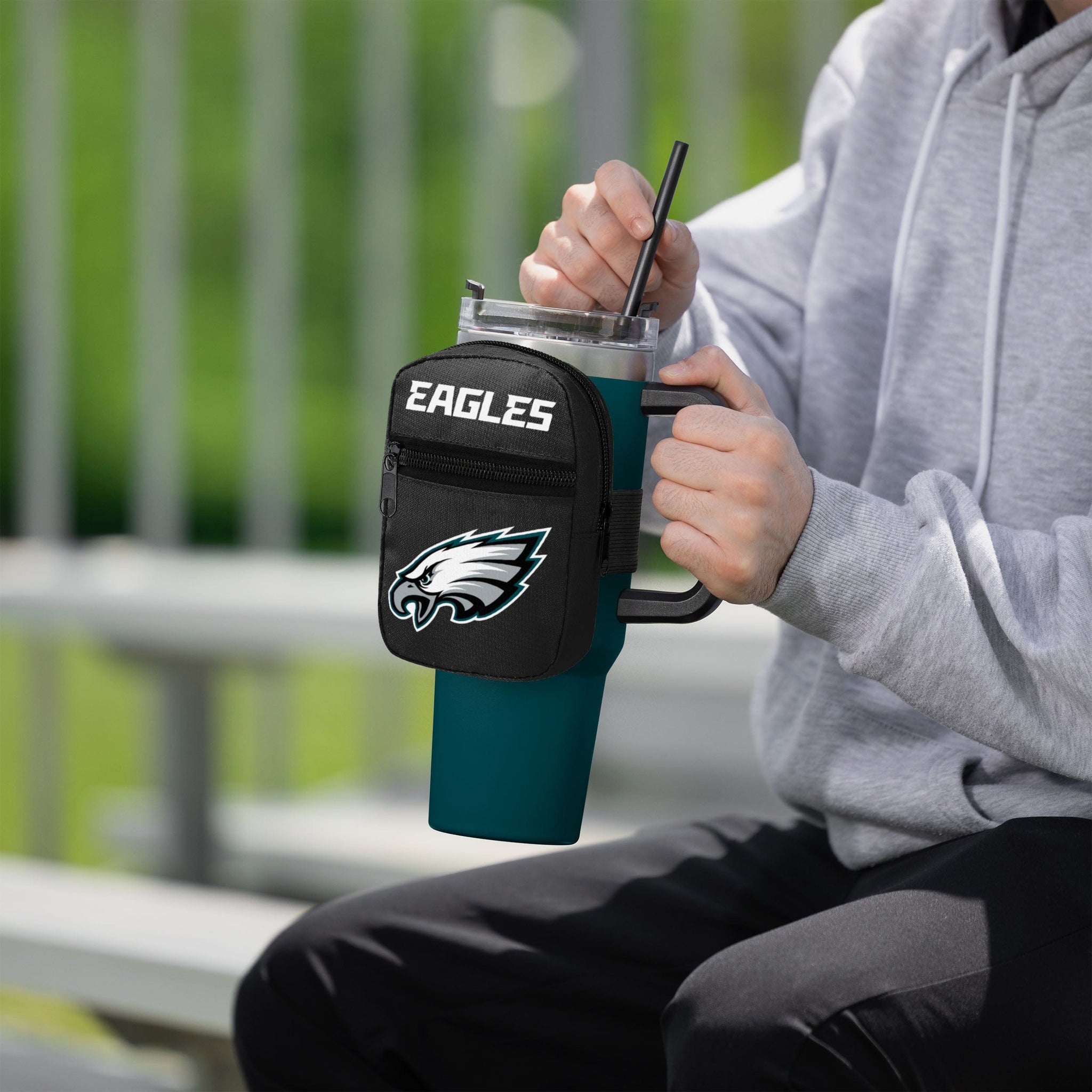 Around your tumbler and off to the game! Pack your essentials and put your team pride on display with this Philadelphia Eagles Primary Logo Tumbler Fanny Pack.