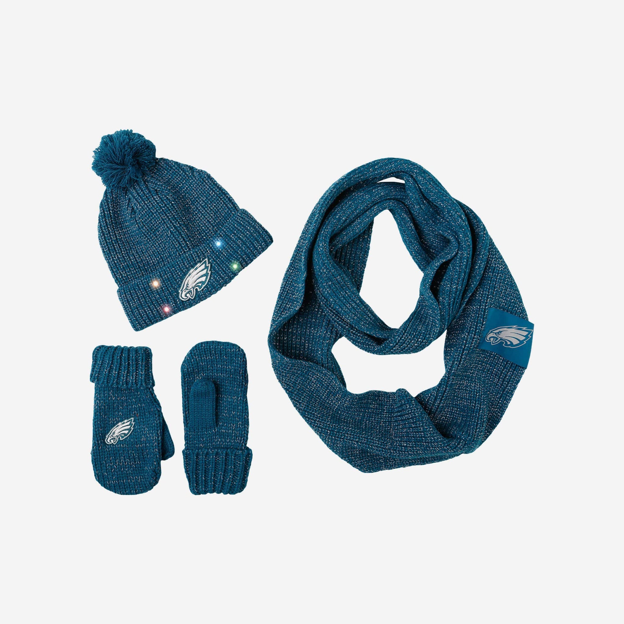 Brrrr. It gets chilly on those winter gamedays. But you'll stay oh, so toasty thanks to the supa hot fire styles of this Philadelphia Eagles Women's Glitter Knit Cold Weather Set!