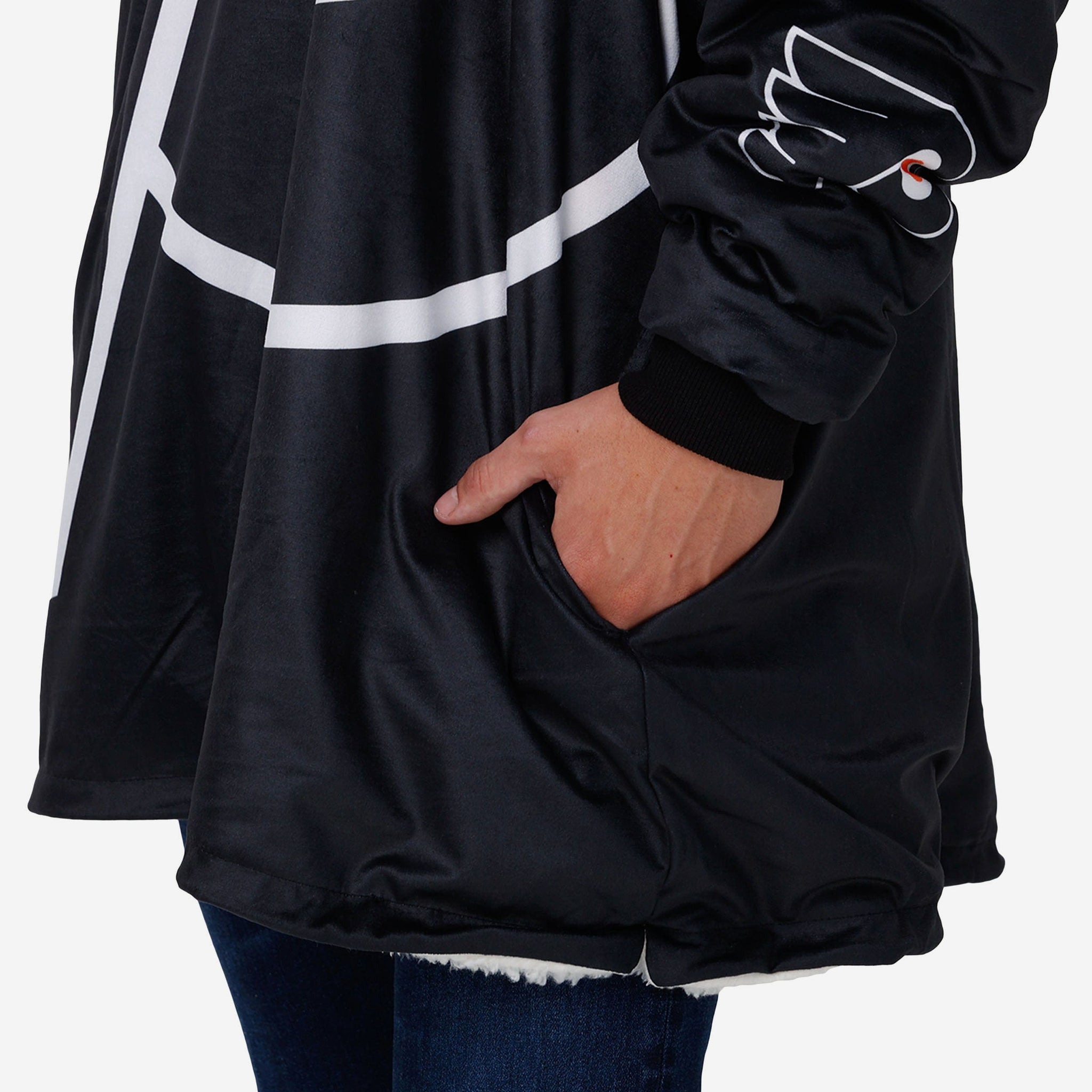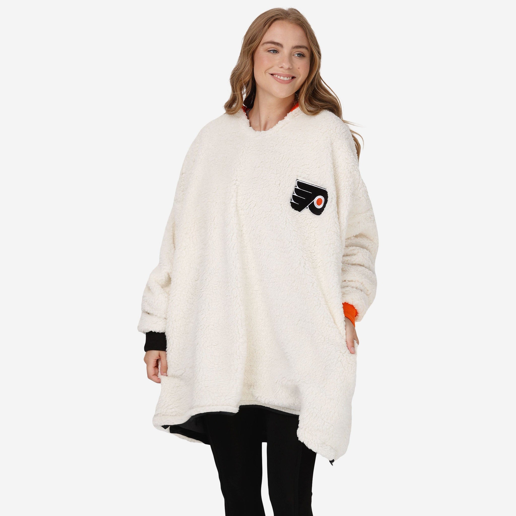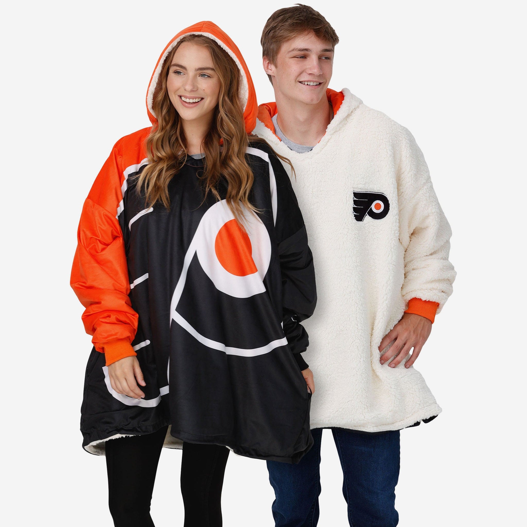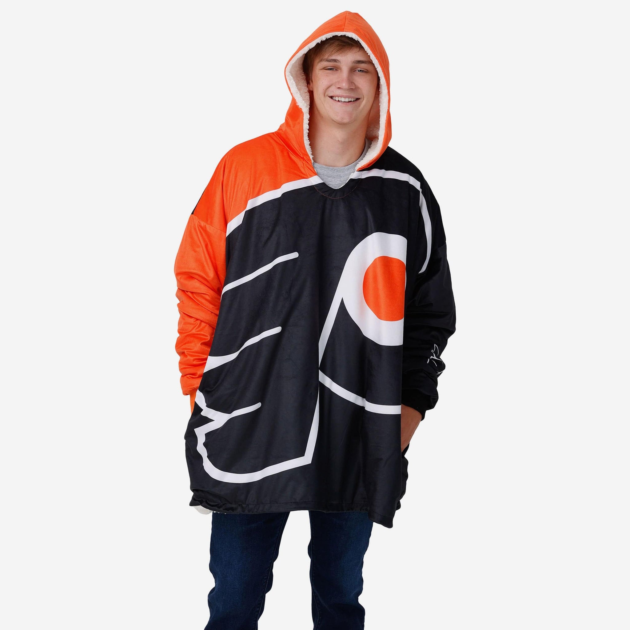 Never before has fandom looked so good and felt so relaxing. Lounge like a legend while you cheer your team on to victory by rocking this Philadelphia Flyers Reversible Colorblock Hoodeez.