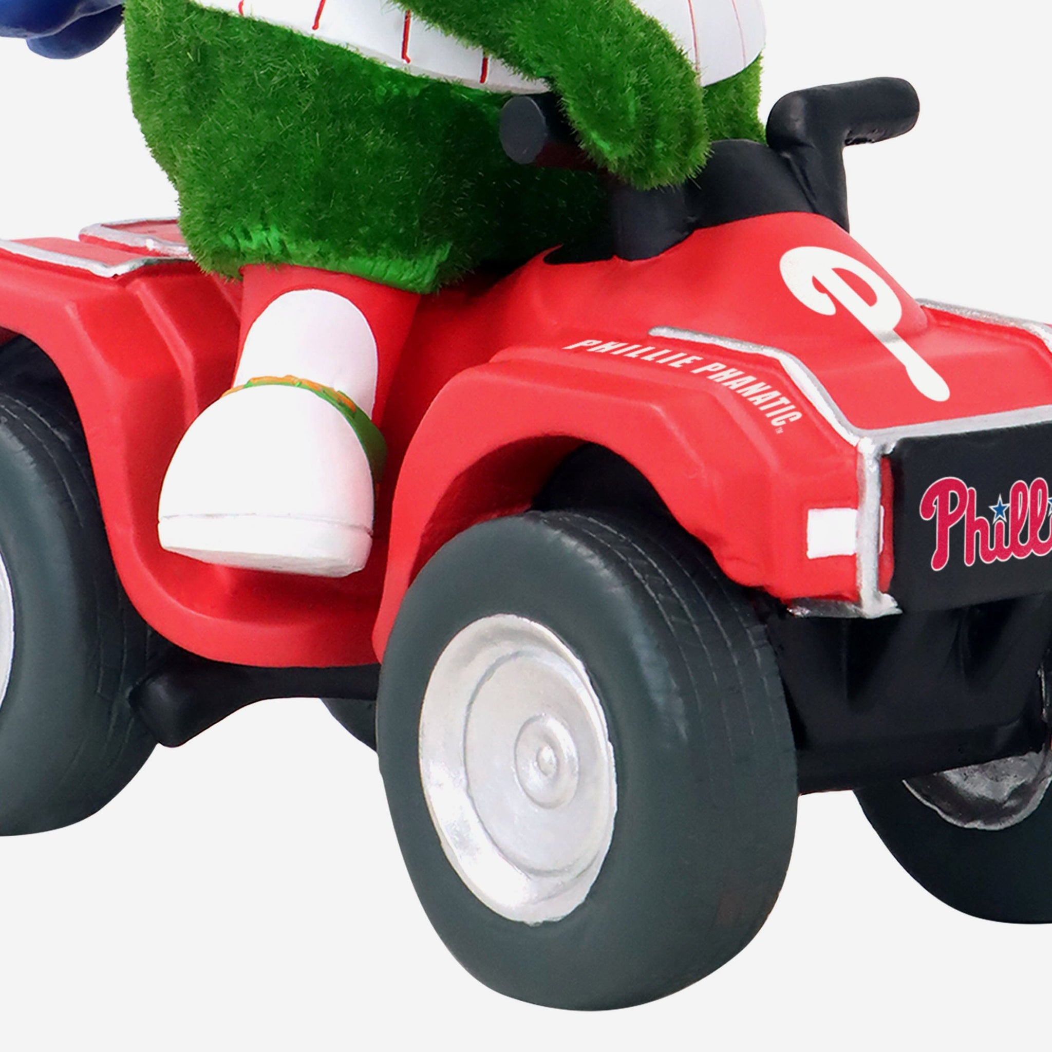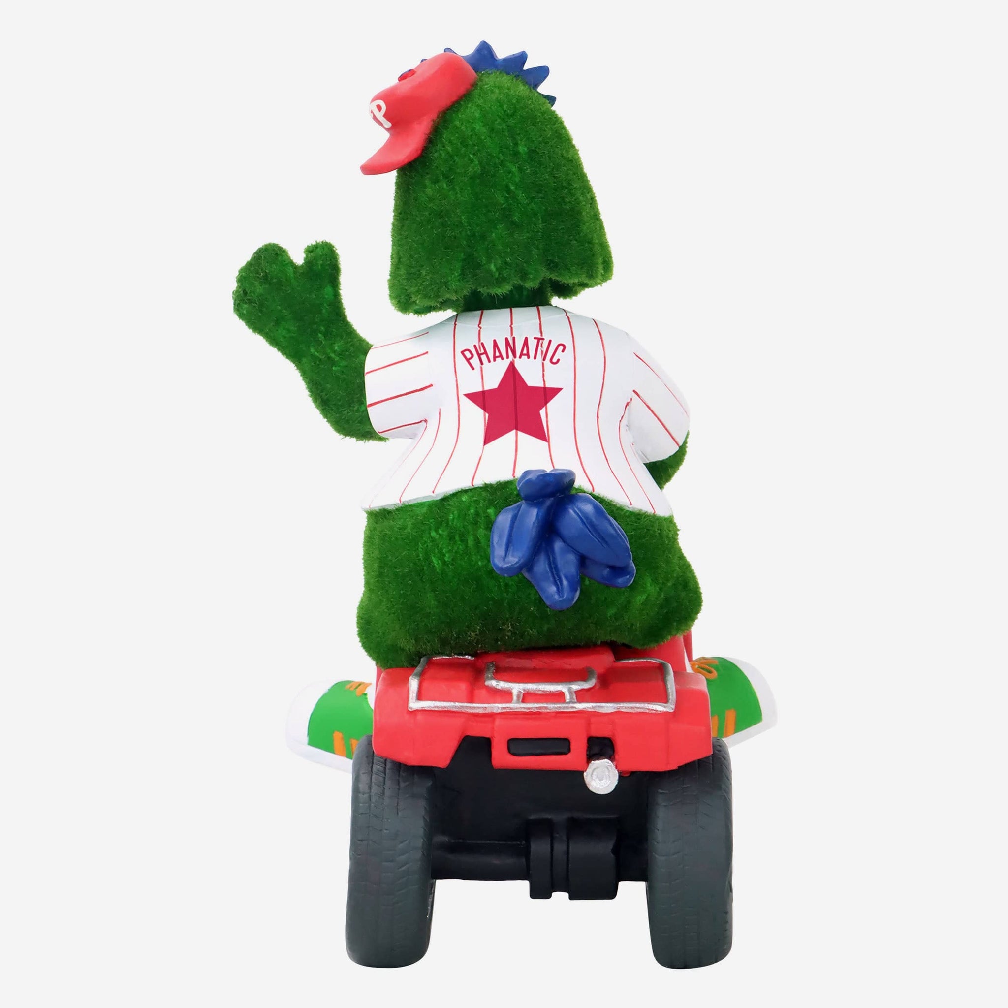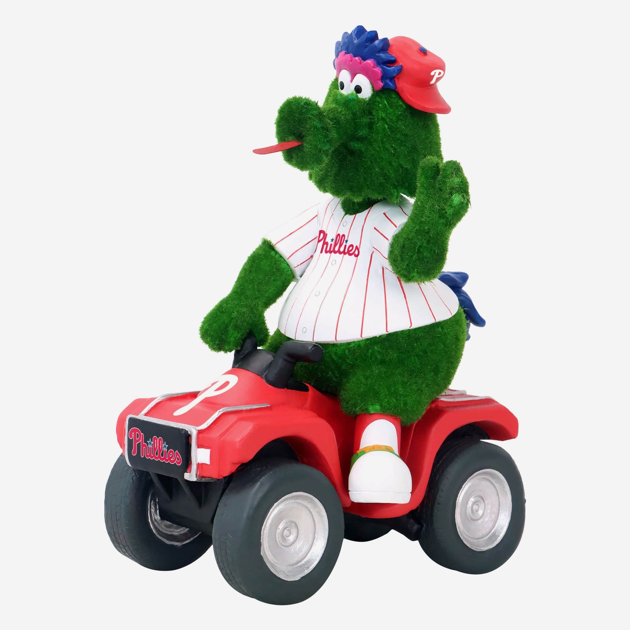 Ring the bell while you ride around town! The Phillie Phanatic Philadelphia Phillies Fuzzy Fur ATV Mascot Bobblehead is cruising into your collection.