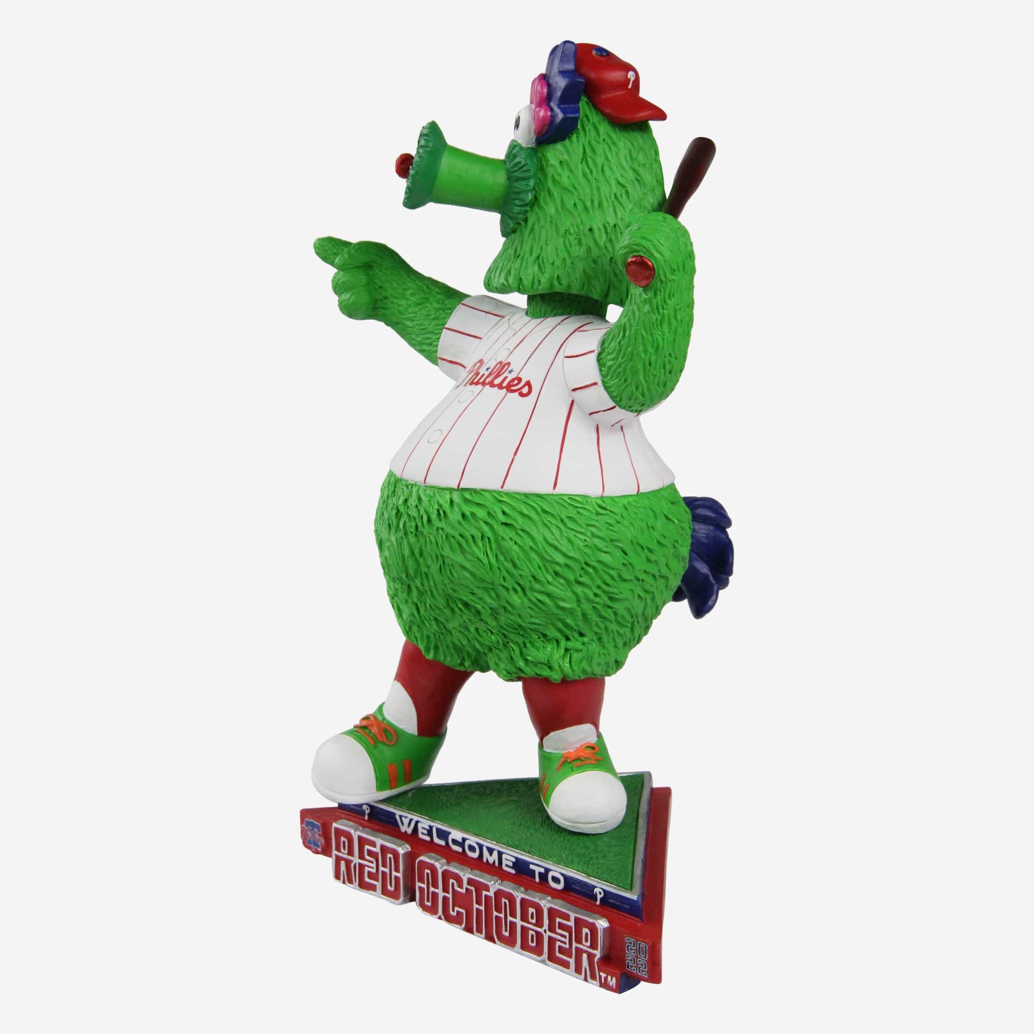 For the first time in over a decade, October is red. Celebrate the Phillies' incredible season and paint the town red with this Phillie Phanatic Philadelphia Phillies Welcome to Red October Mascot Bobblehead.
