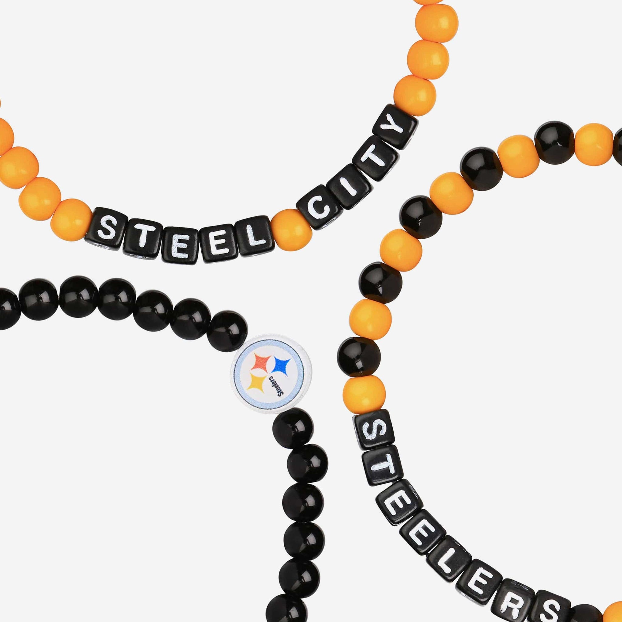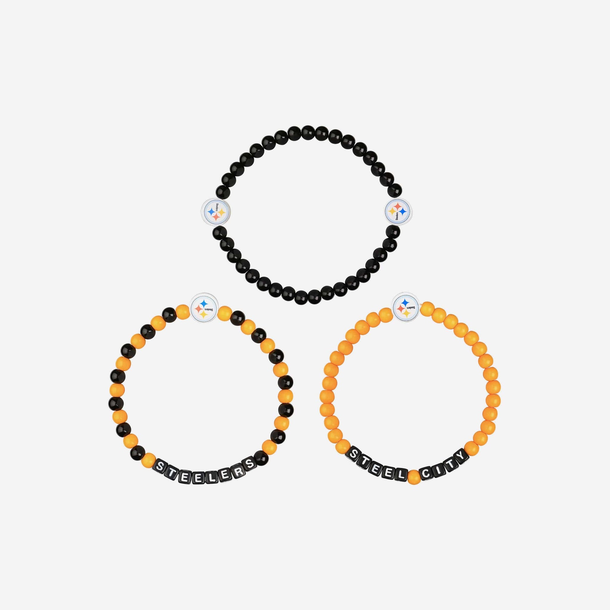 A whole new way to rep the team in style is here. Step up your fan fashion sense with this Pittsburgh Steelers 3 Pack Beaded Friendship Bracelet. These matching friendship bracelets have an all-over team-colored design and team logo displays, which makes them the perfect way to show your support for the Pittsburgh Steelers on gamedays and every day in between.