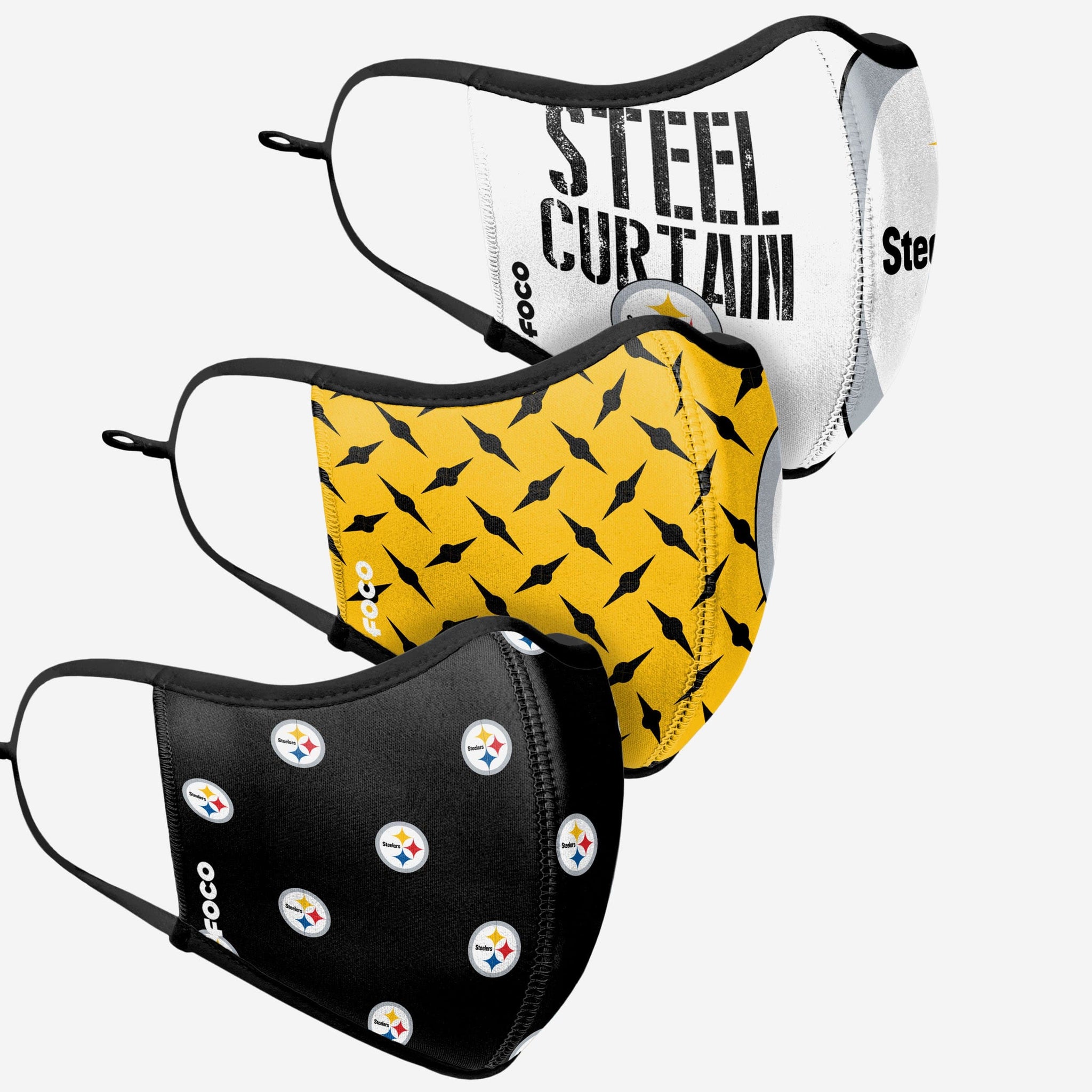 Cover up and rep your team on the go with this Pittsburgh Steelers Thematic Sport 3 Pack face covering!