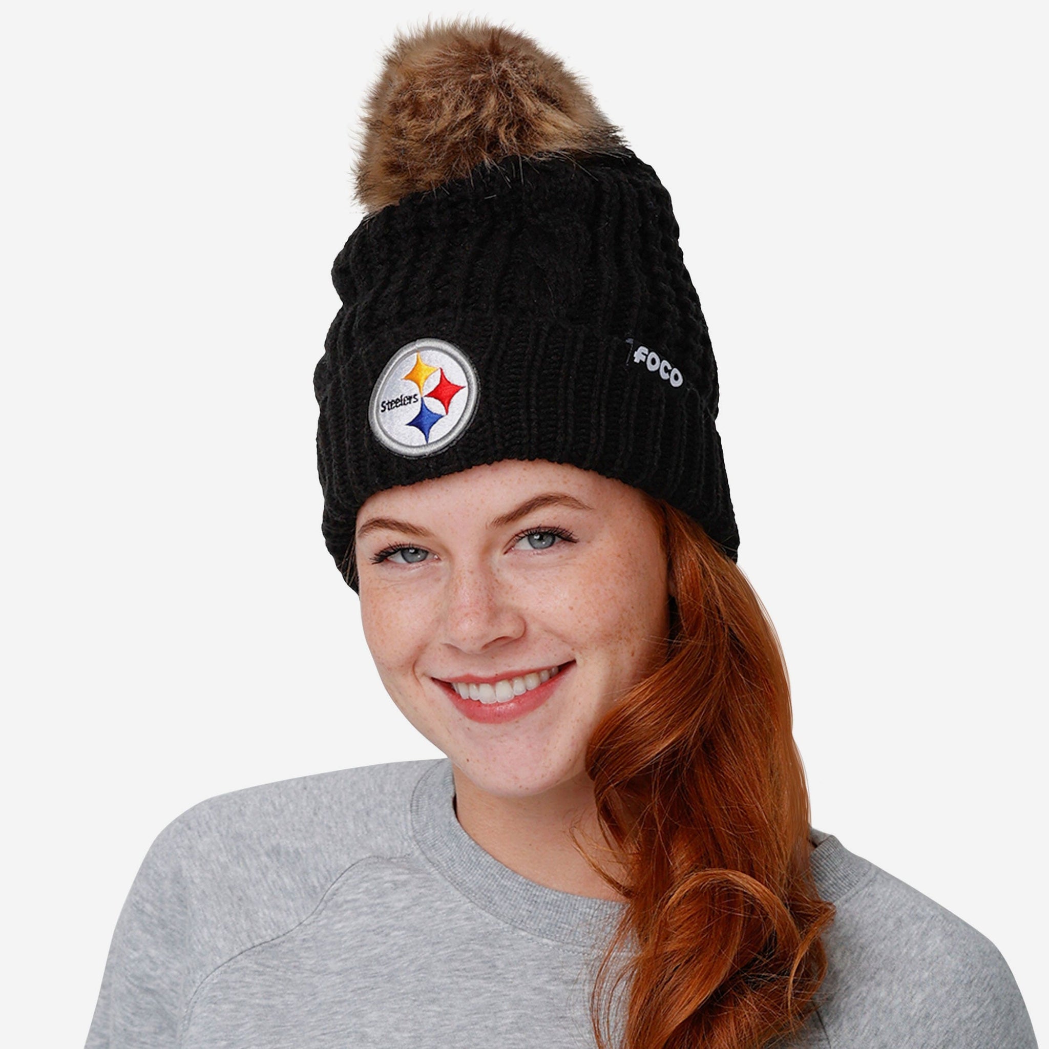 Putting together the ultimate fit for the tailgate and beyond? Make sure to get your head in the game with the Pittsburgh Steelers Women's Faux Fur Pom Beanie!