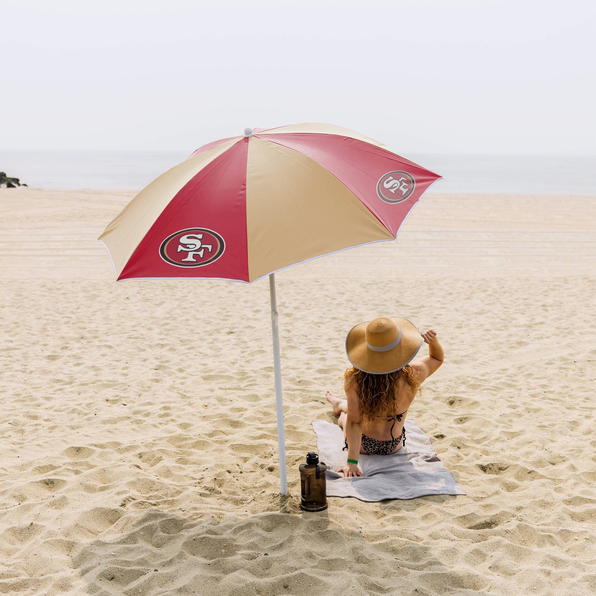 Beating the heat with this San Francisco 49ers Beach Umbrella is a rare example of when throwing shade is actually a GOOD thing!