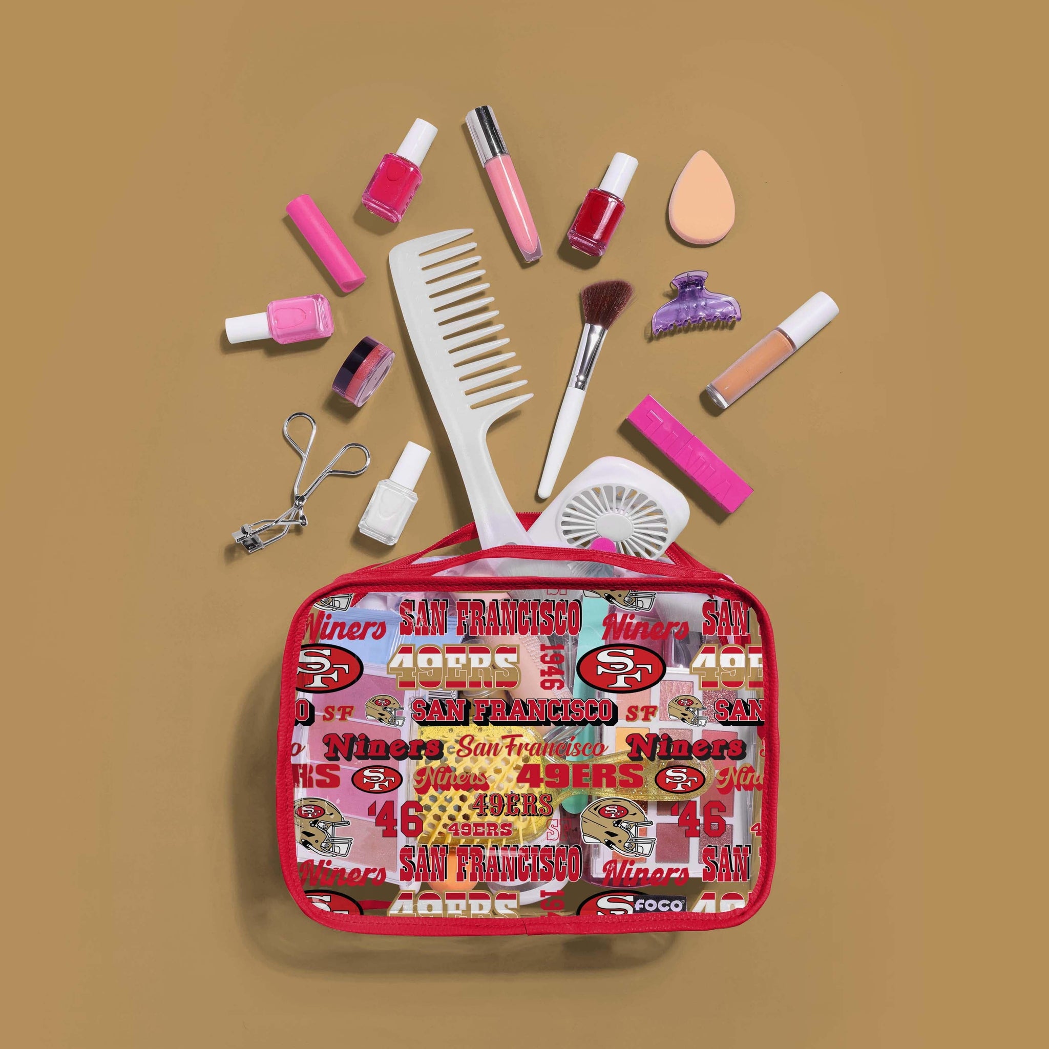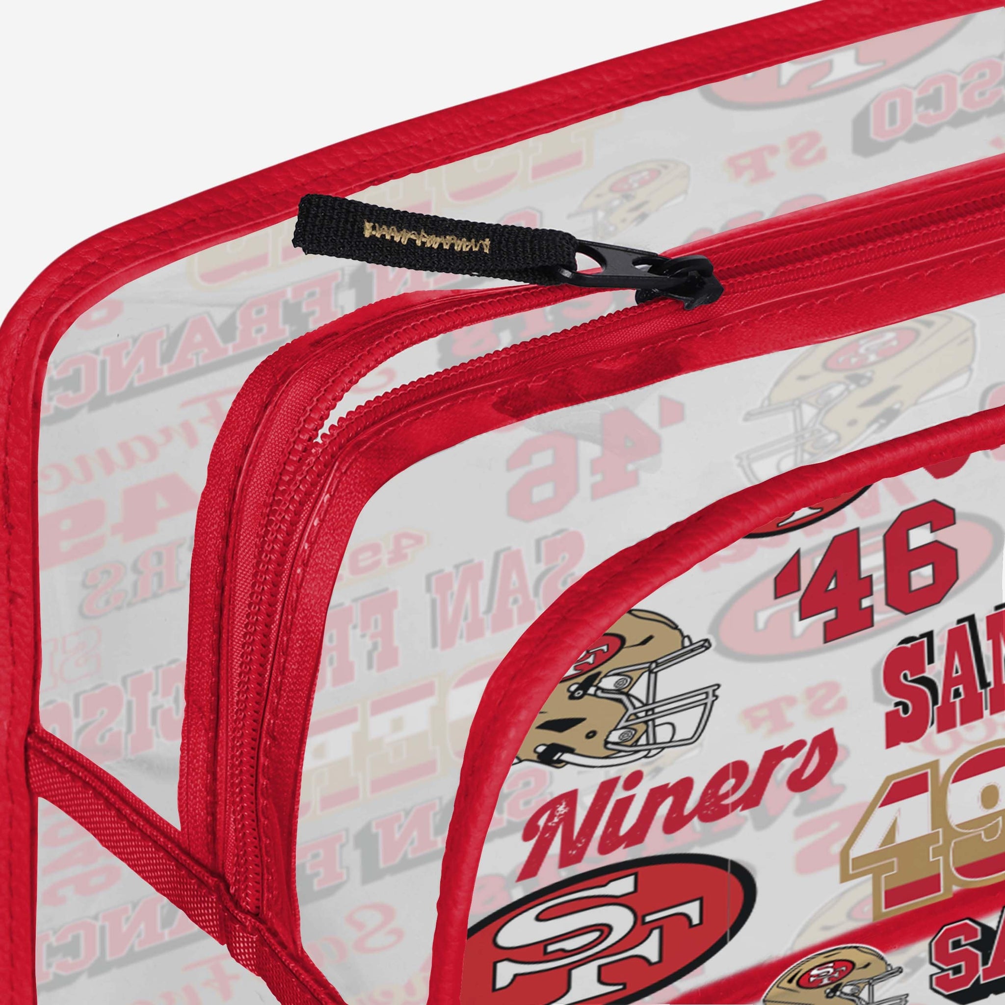 Lipstick. Hair care. Fandom. Get ready to carry it all! Wherever you go, let everyone clearly see which team you root for with a San Francisco 49ers Repeat Retro Print Clear Cosmetic Bag.