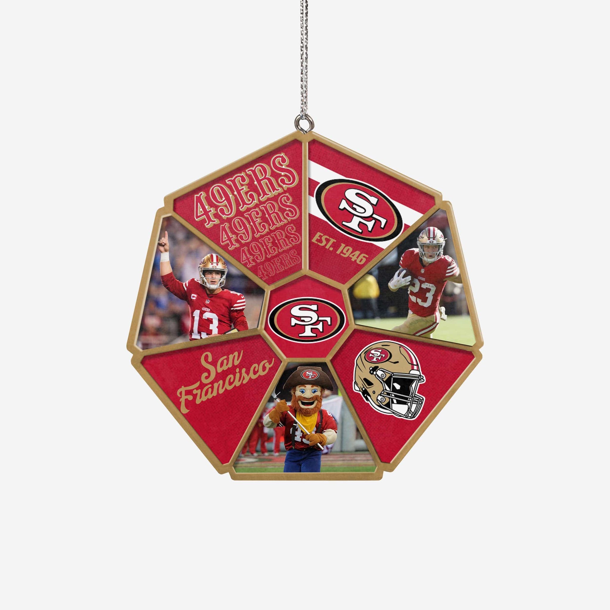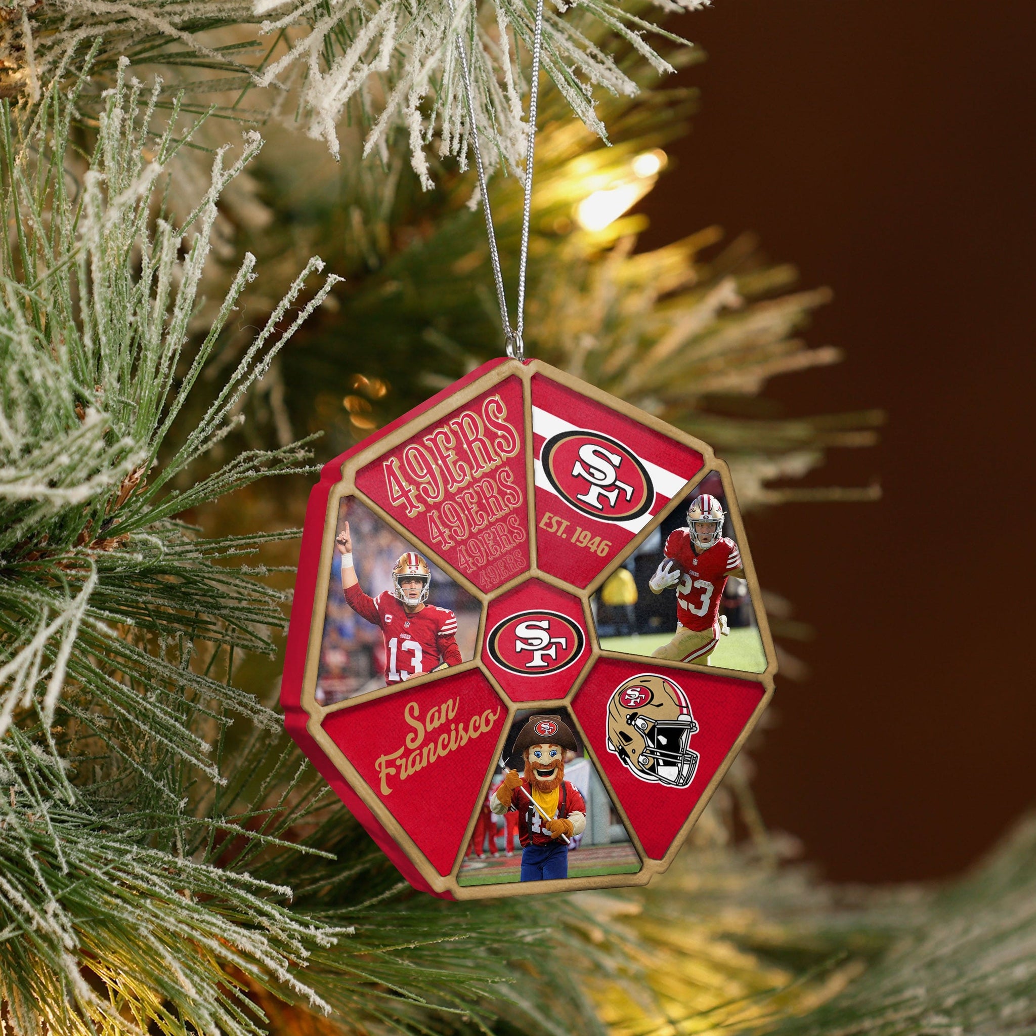 Holidays are for family, friends, and football! Bring fandom to your festivities with the San Francisco 49ers Team Wheel Ornament.