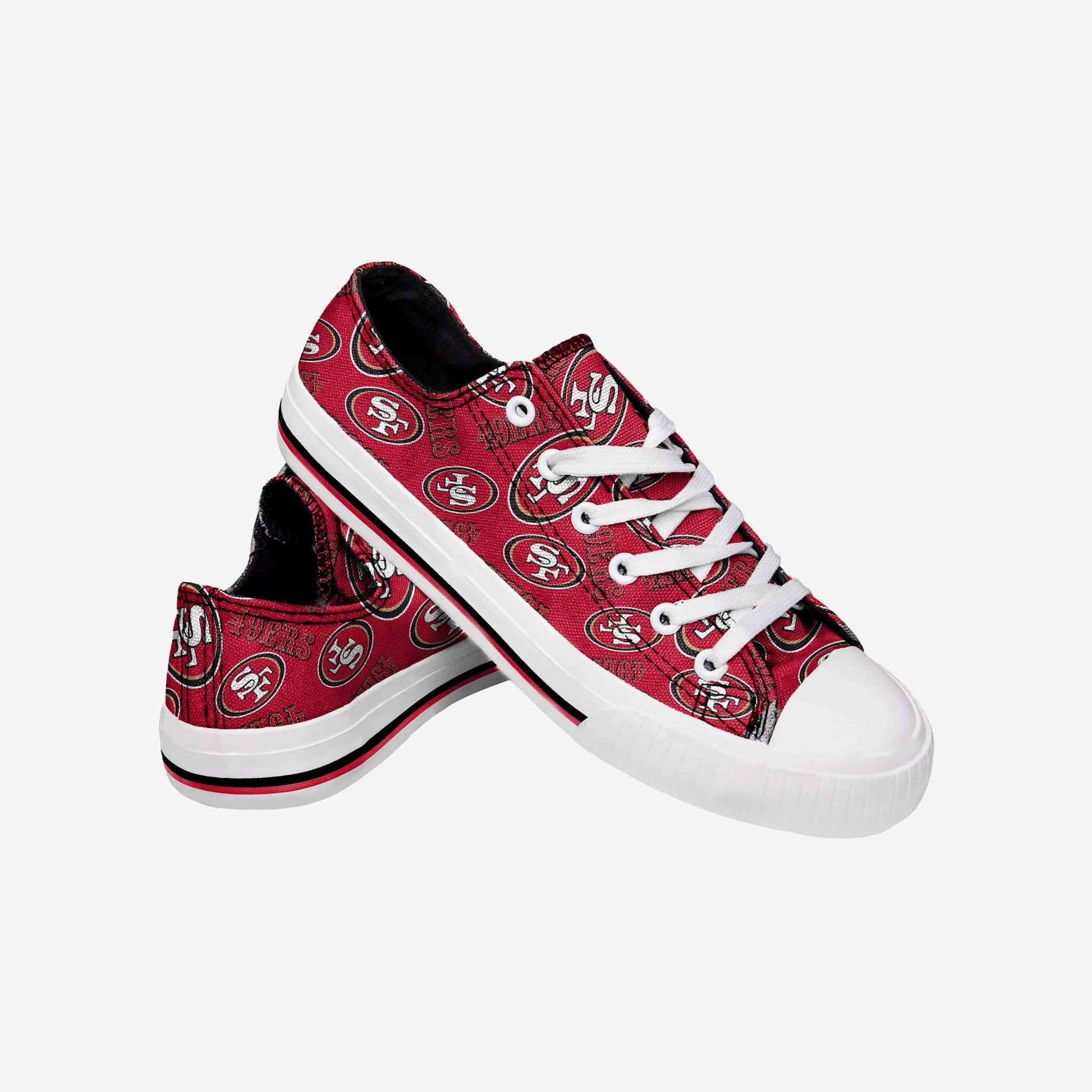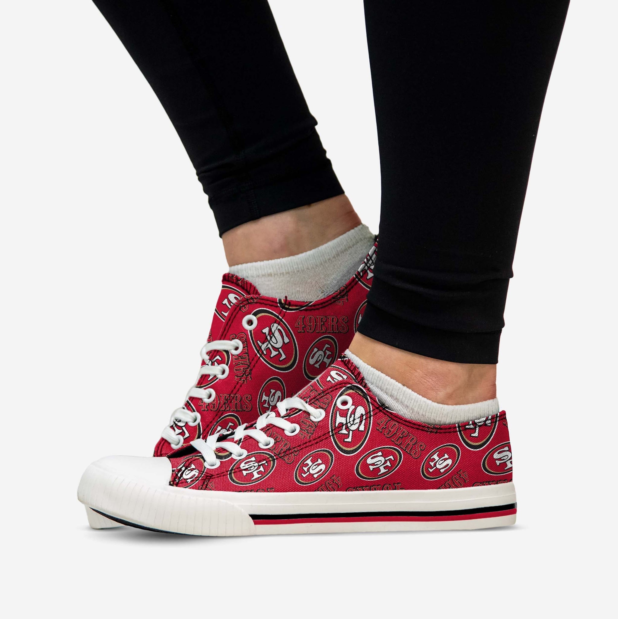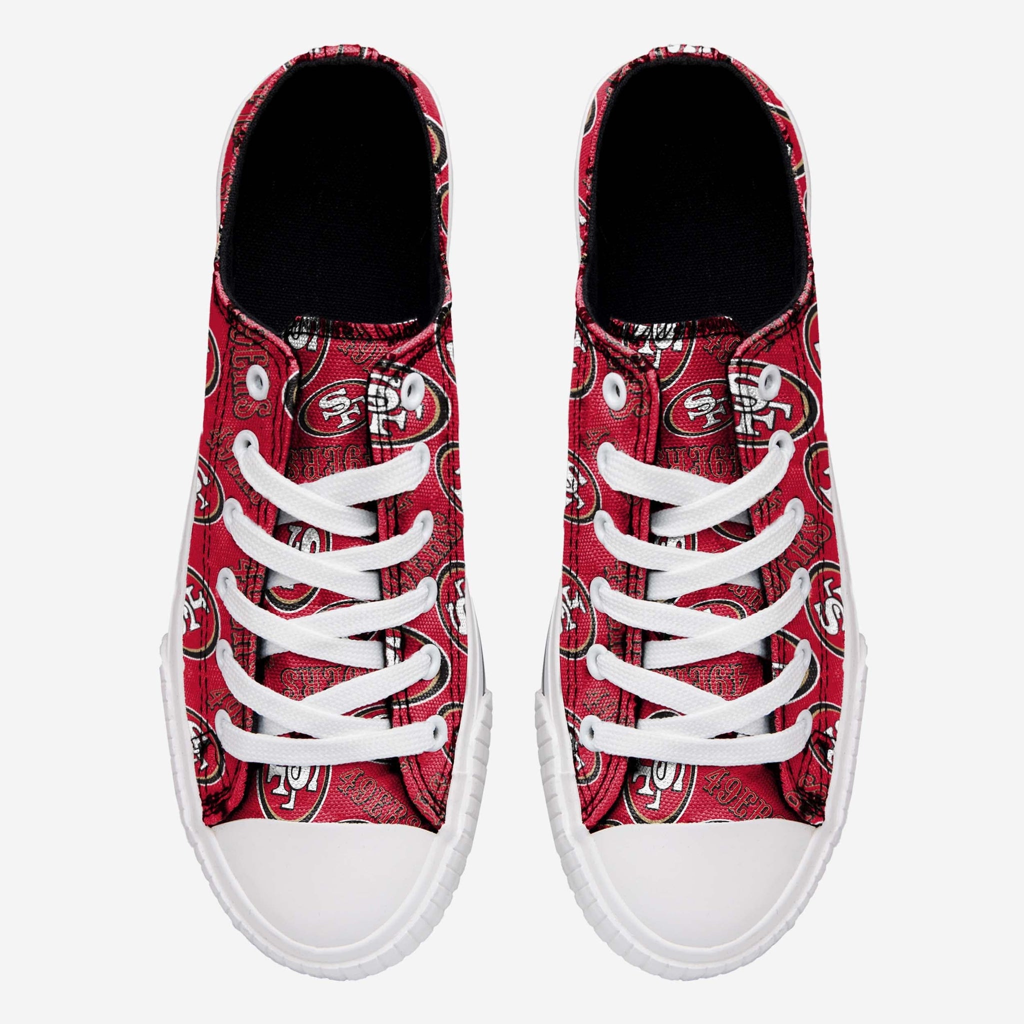 The only thing better than kicking your feet up and relaxing is kicking your feet up and relaxing while your feet are wearing these San Francisco 49ers Womens Low Top Repeat Print Canvas Shoes. That way, you can relax AND let everyone know who the realest fan in the room is.