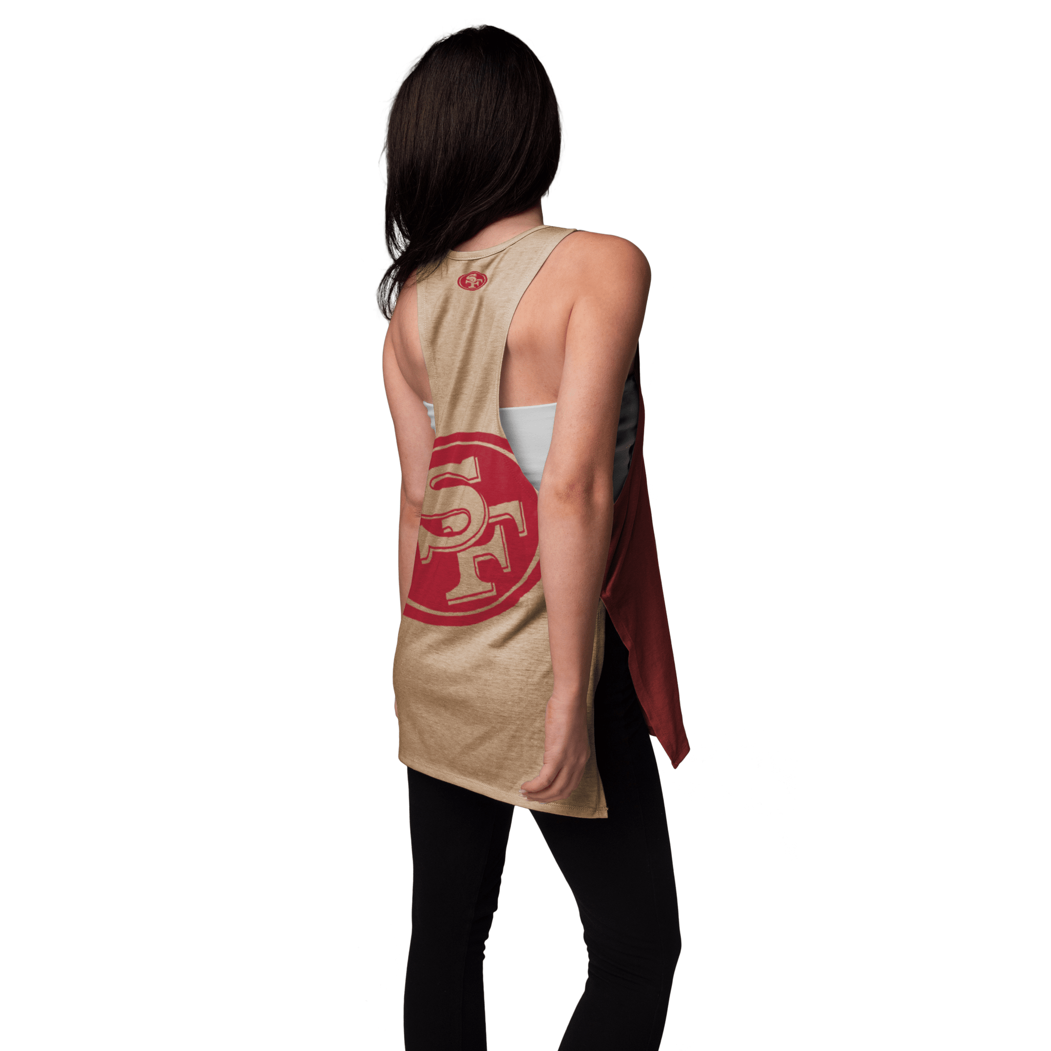 Bold fans like you need to boldly show off your fandom. That's where this San Francisco 49ers Women's Side-Tie Sleeveless Top comes in. It has your team colors on display on the front and the back, because two ways to show off your team spirit are better than one.
