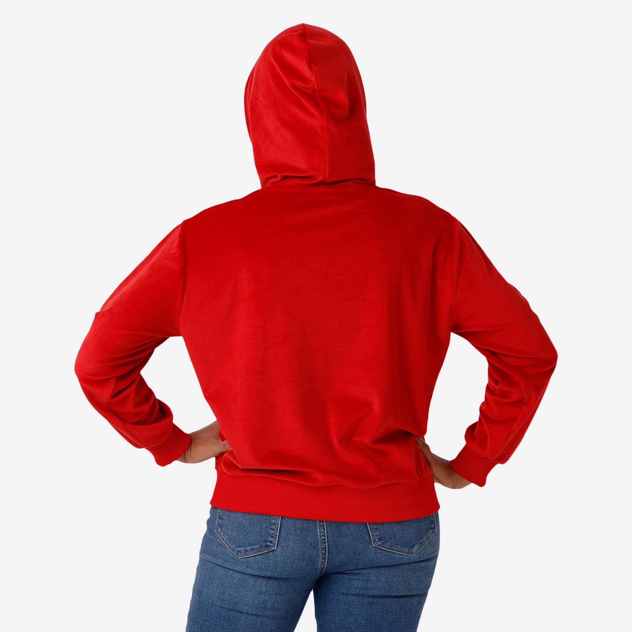 Soft. Warm. And yours to add to your gameday fit. The San Francisco 49ers Women's Velour Hooded Sweatshirt is just what you need to stay comfortable no matter what gameday brings.