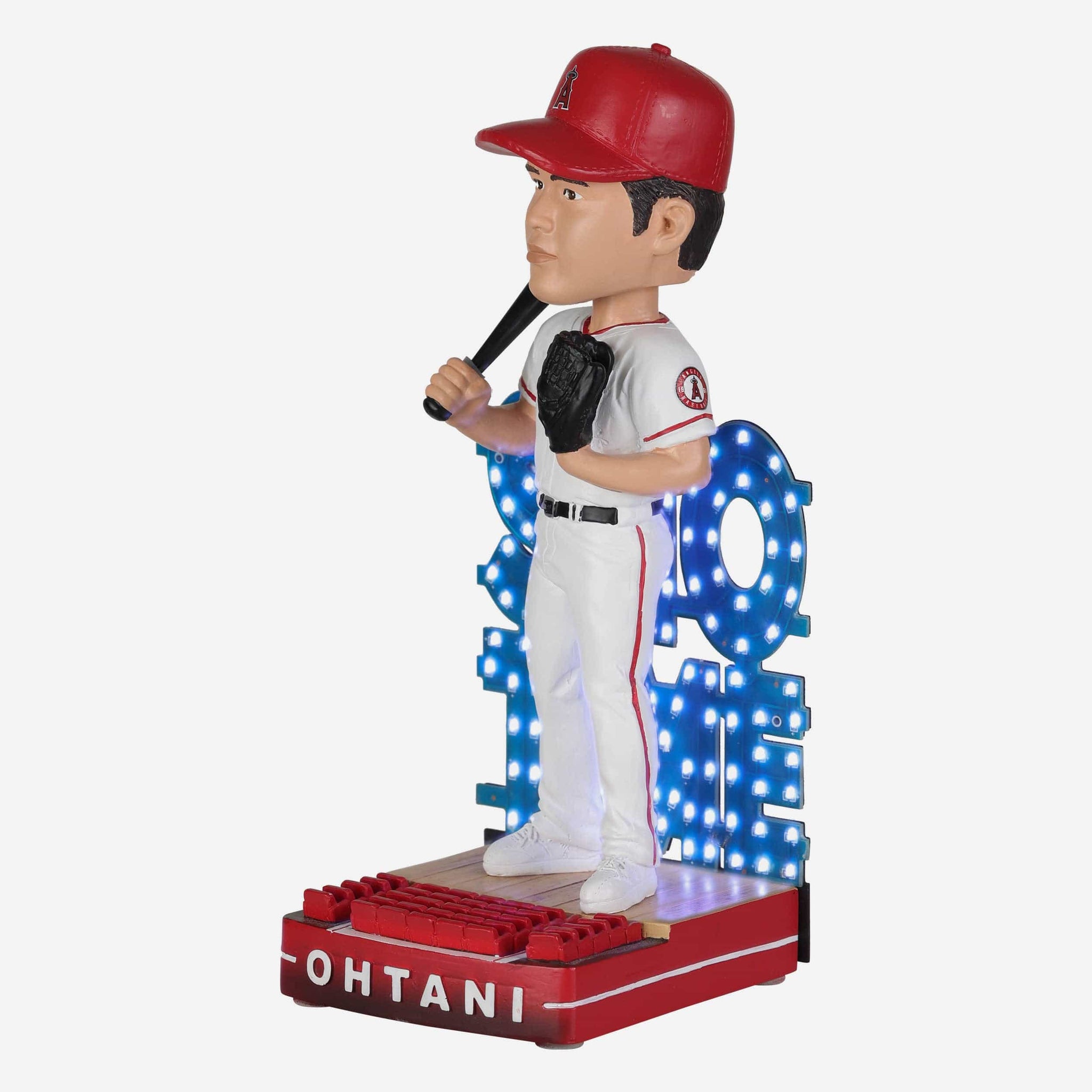 Lights, camera, SHOHEI! The Angels' ace thrives in the spotlight, and he's ready to take center stage and light up your lineup with this Shohei Ohtani Los Angeles Angels Shotime Light Up Bobblehead.