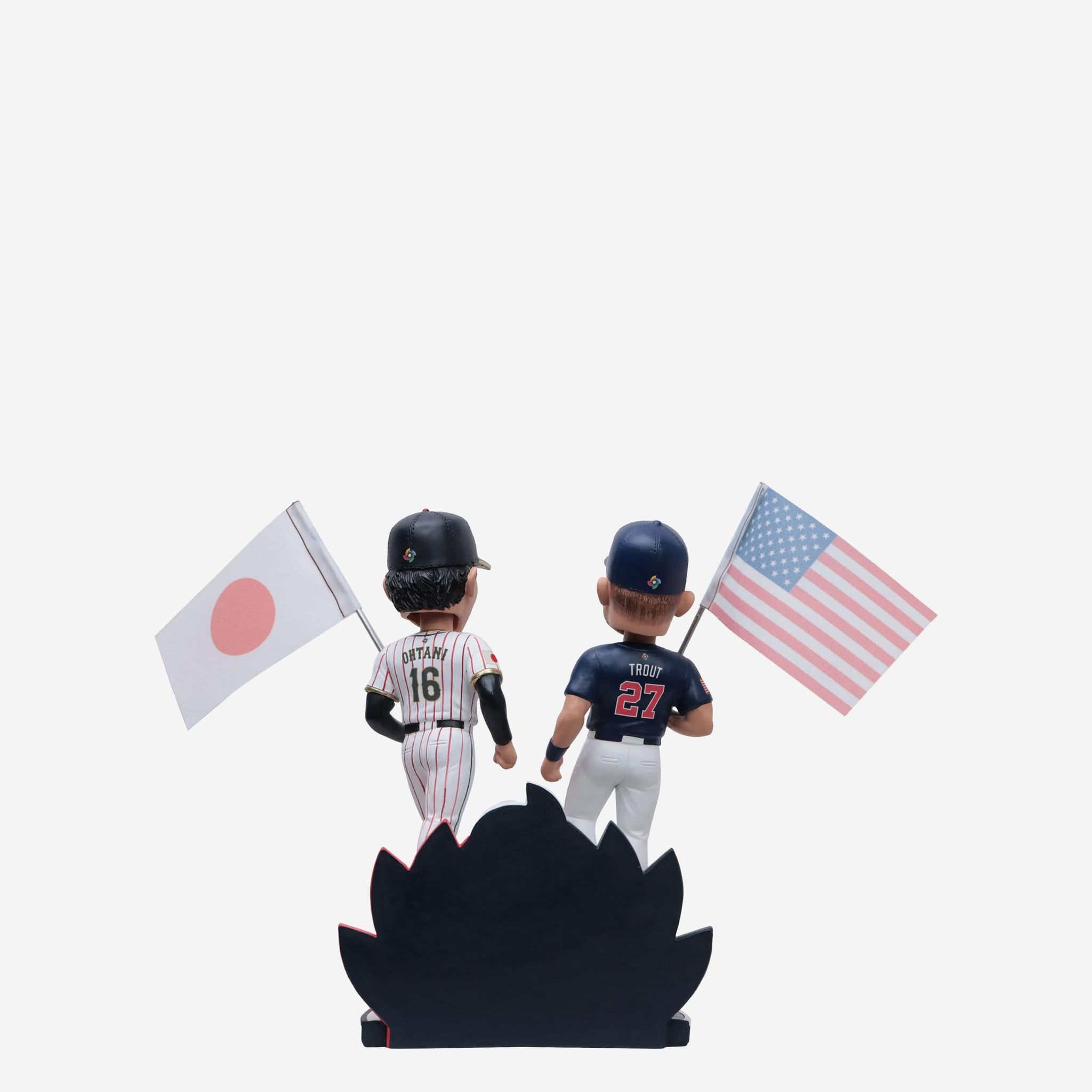 WBC fans, these are your captains speaking. Let your fan flag fly while this superstar duo lets their countries' flags fly with the Shohei Ohtani & Mike Trout Japan & USA 2023 World Baseball Classic Flag Dual Bobblehead.