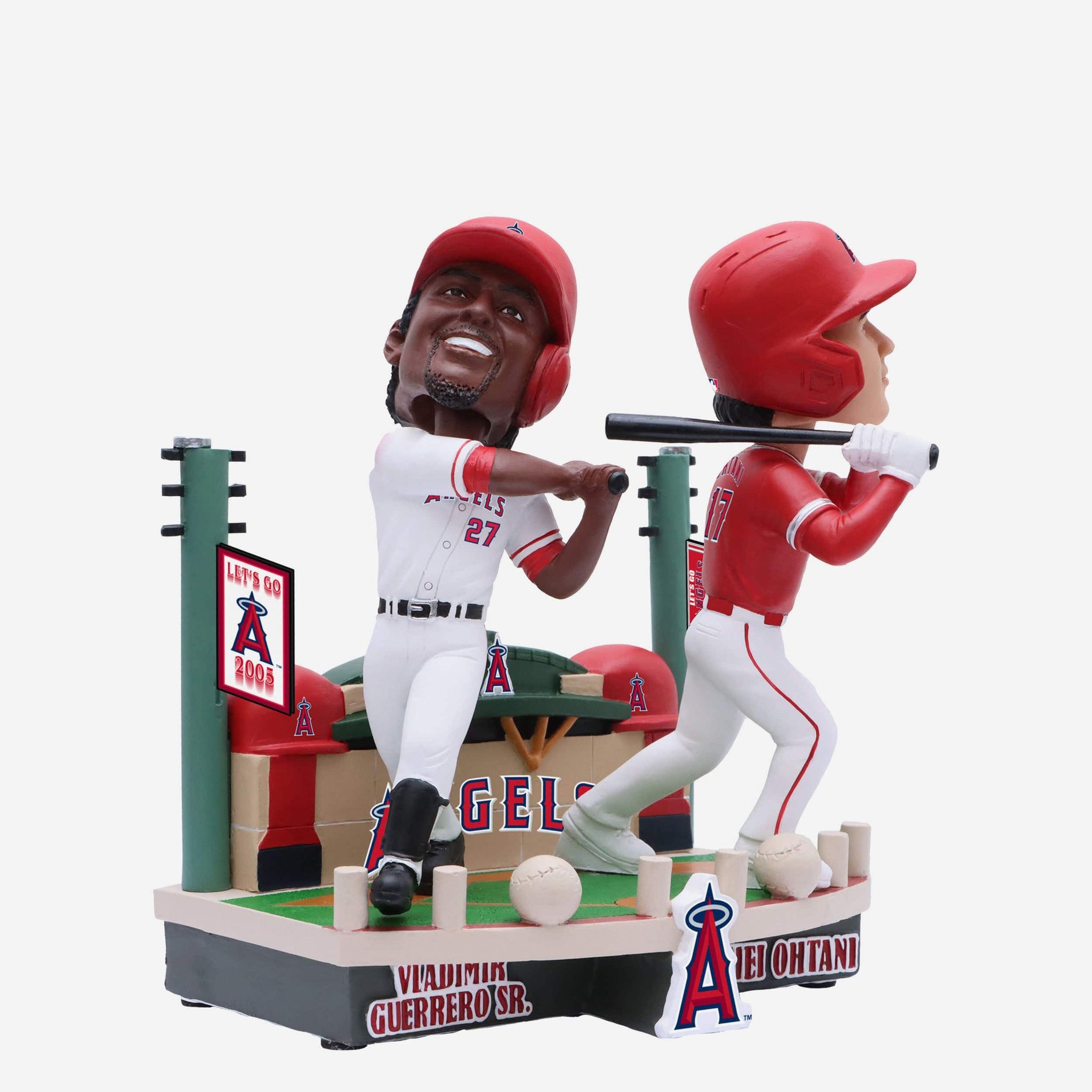 • Portrays Guerrero Sr. wearing his white gameday uniform and Ohtani wearing his red gameday uniform in action poses for a double dose of Halos home run prowess