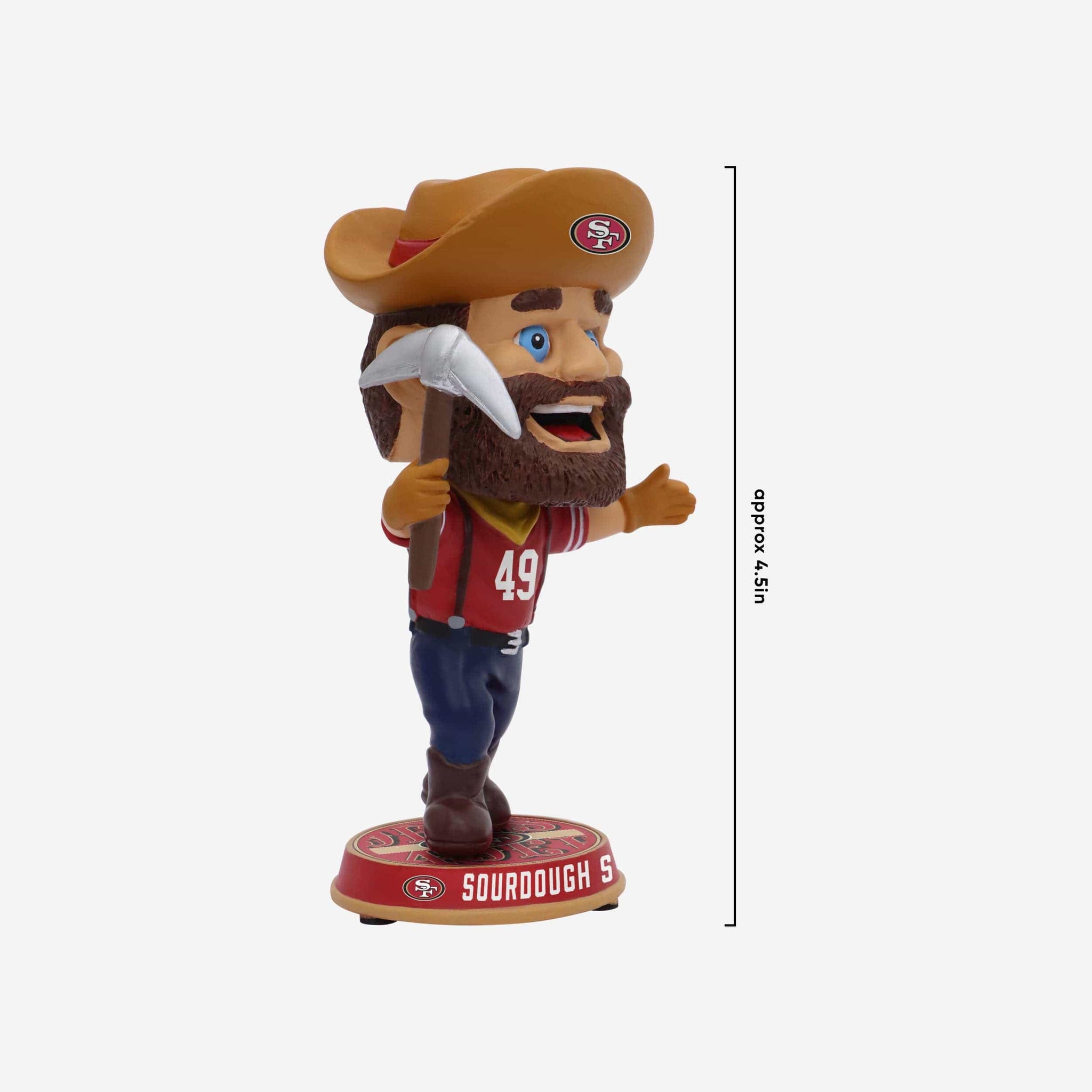 It’s a gold rush in San Fran. Grab your pickaxe and shovel and mine some sweet gameday wins with the officially licensed Sourdough Sam San Francisco 49ers Mascot Field Stripe Mini Bighead Bobblehead.