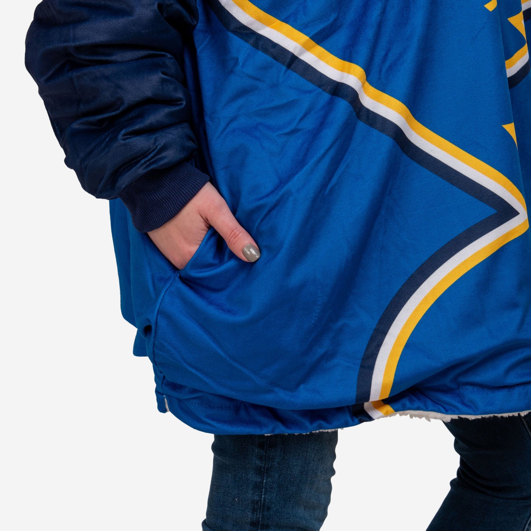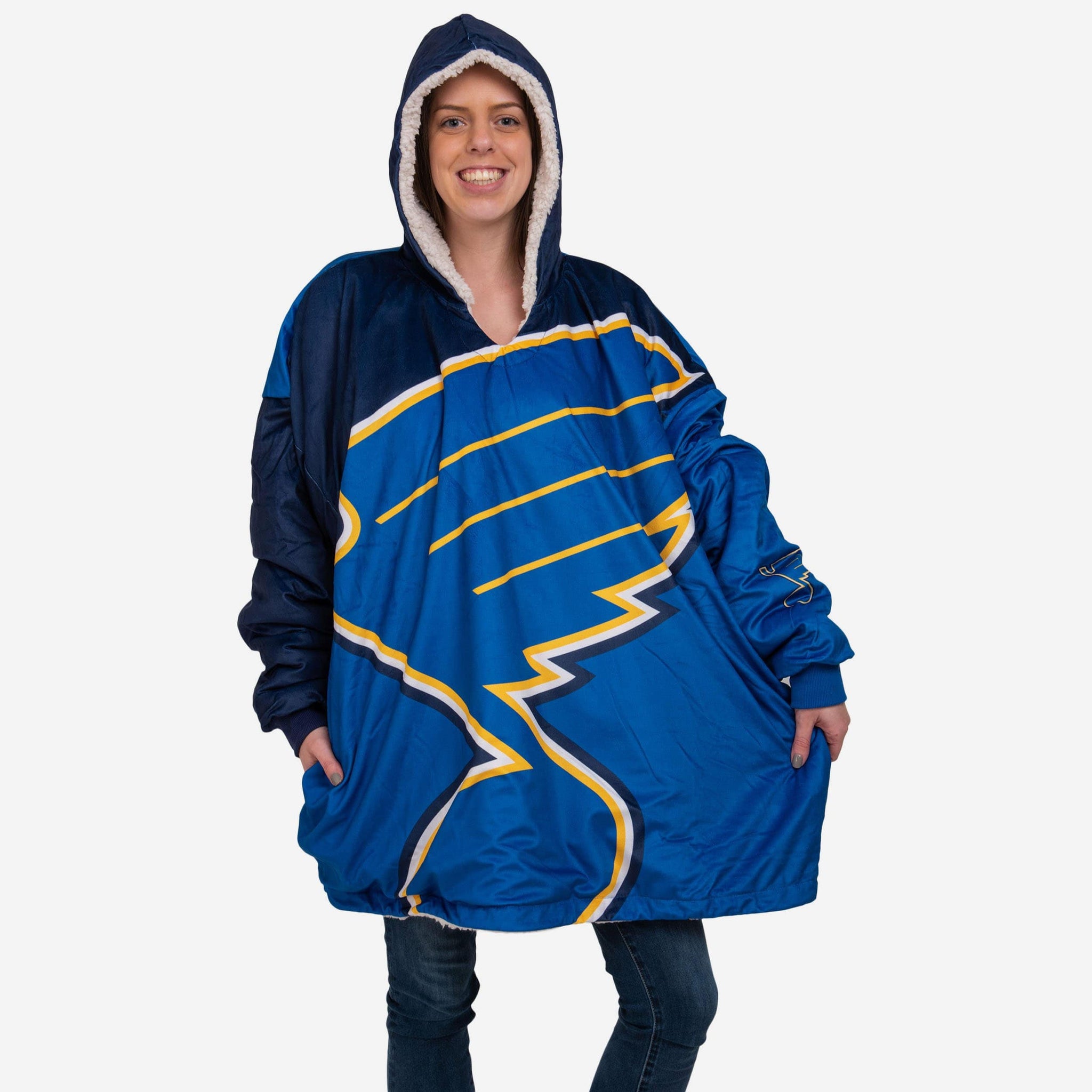 Never before has fandom looked so good and felt so relaxing. Lounge like a legend while you cheer your team on to victory by rocking this St Louis Blues Reversible Colorblock Hoodeez.