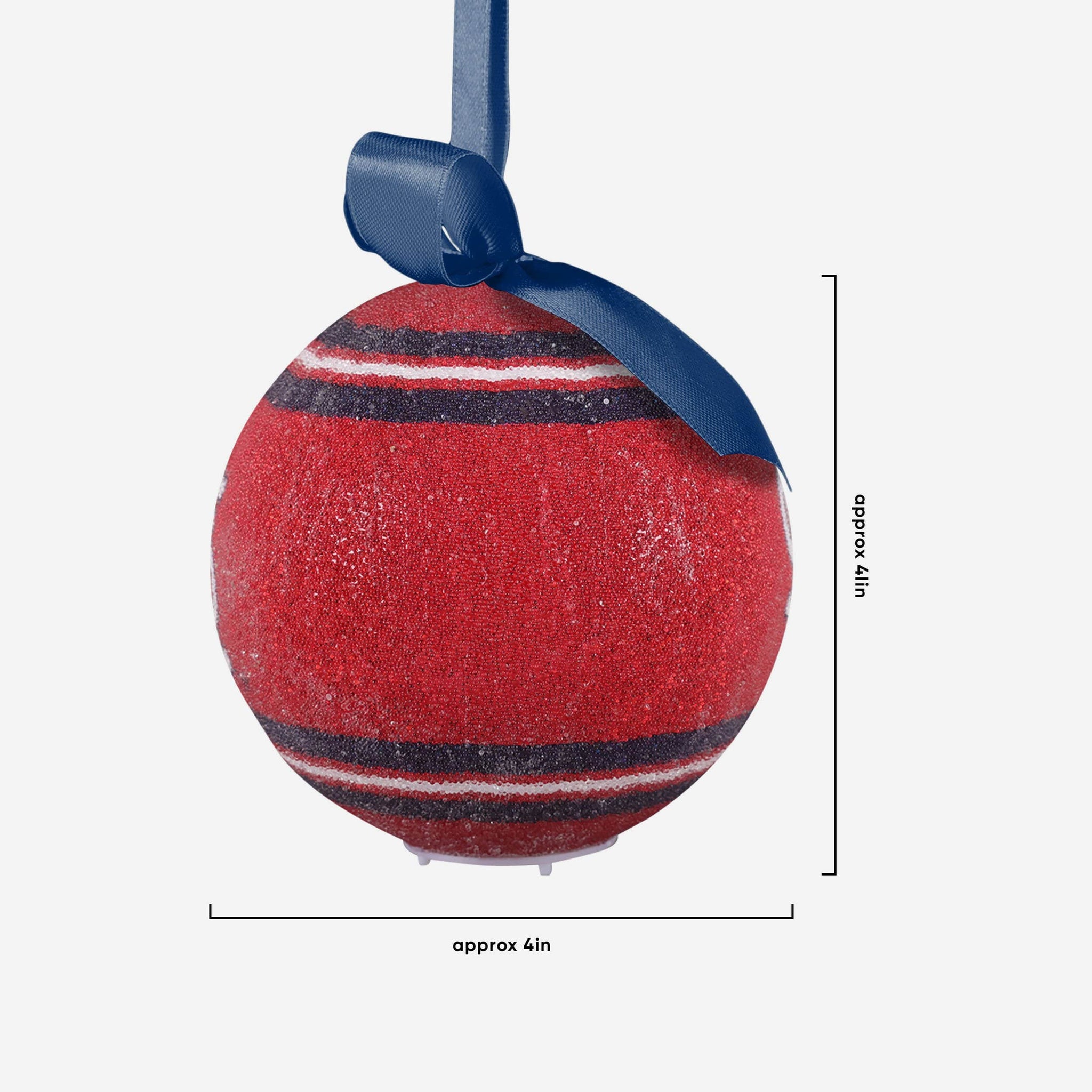 - Team-colored stripe accents on top and bottom of ornament to make your tree look extra awesome