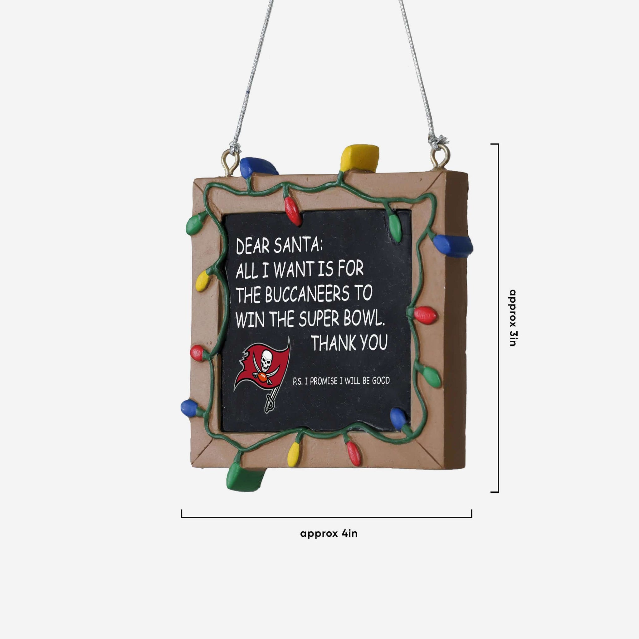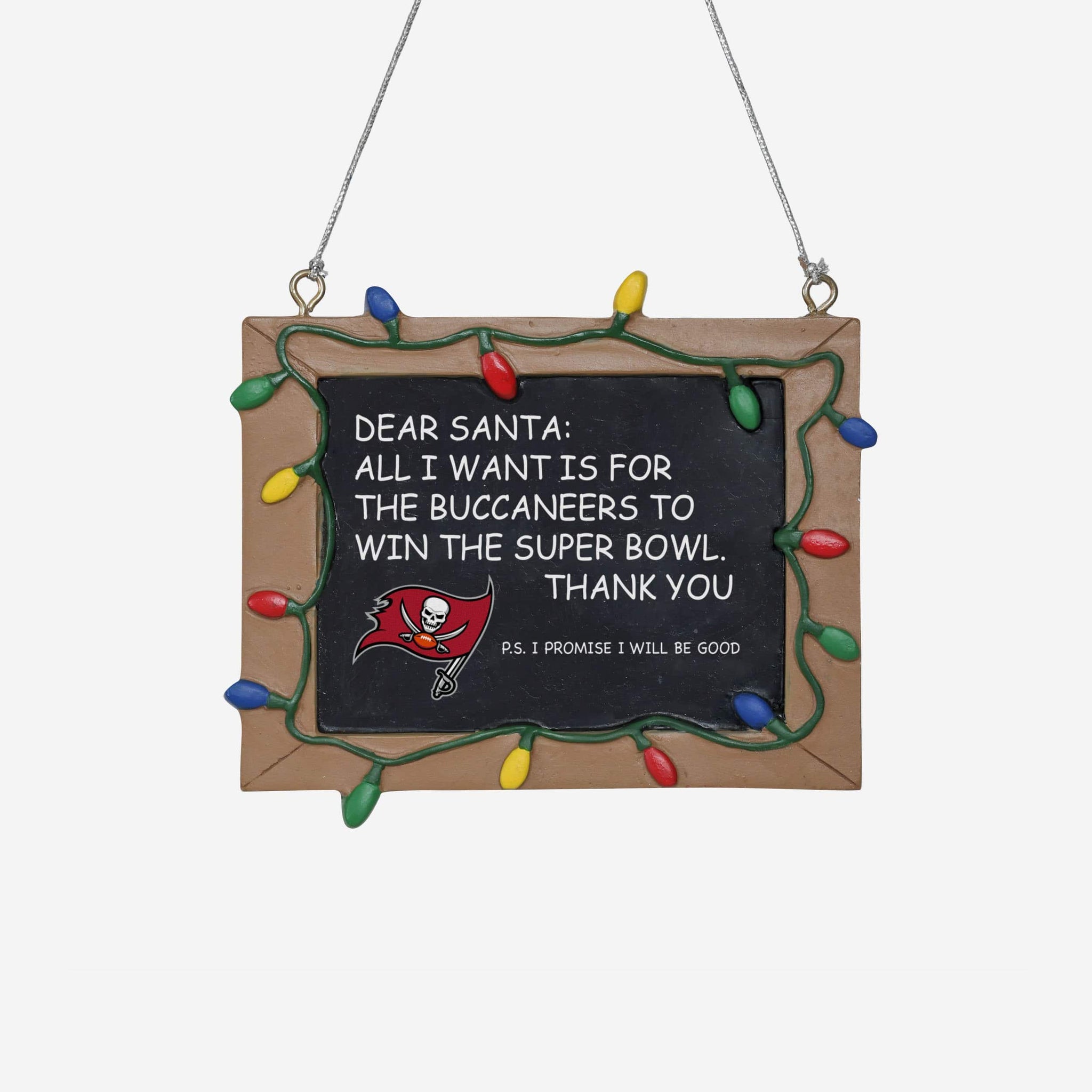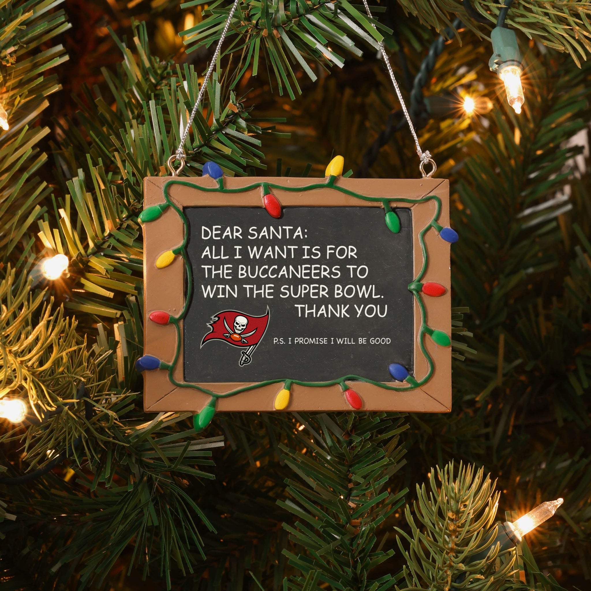 So, you made your list and sent it to jolly ol' Fanta Claus, asking him for a championship. But sometimes letters can get lost in the mail. Just in case, put this Tampa Bay Buccaneers Resin Chalkboard Sign Ornament on your tree to let him know how good you've been this year, and that all you want for the holidays is a trophy.