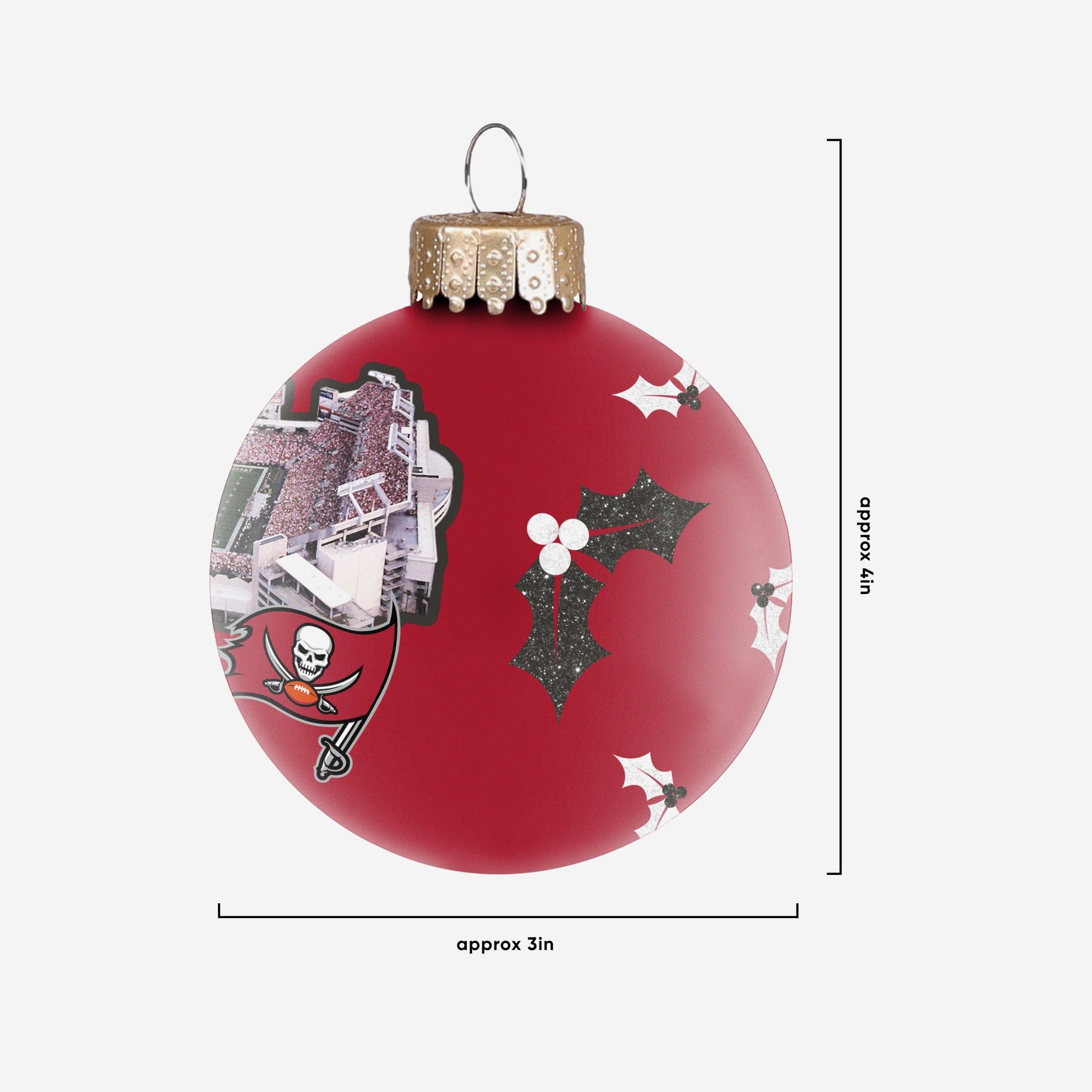 Bring some home field advantage to your home for the holidays. Now every day will feel like gameday during the holidays with this Tampa Bay Buccaneers Stadium Print Glass Ball Ornament on display!