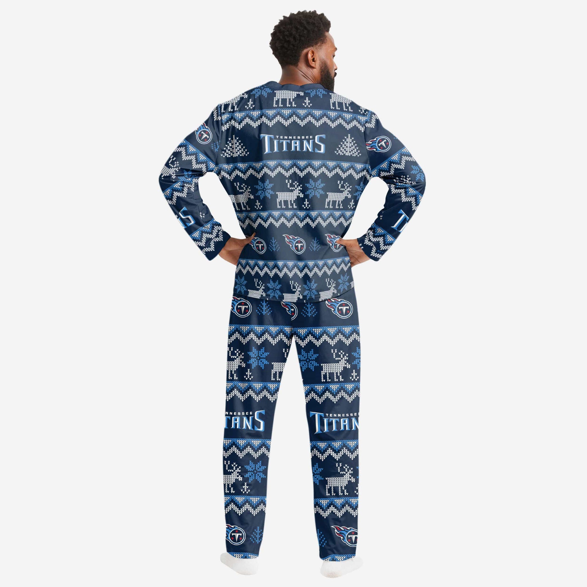 Get some matching family pajamas and dress to impress this holiday season! You won't want to miss these men's team pajamas! These men's PJ's are comfortable and show off your team spirit in the form of some sweet men's jammies. Introducing the Tennessee Titans Ugly Pattern Family Holiday Pajamas! Don't forget to take your holiday photo with the whole family wearing matching Christmas pajamas!