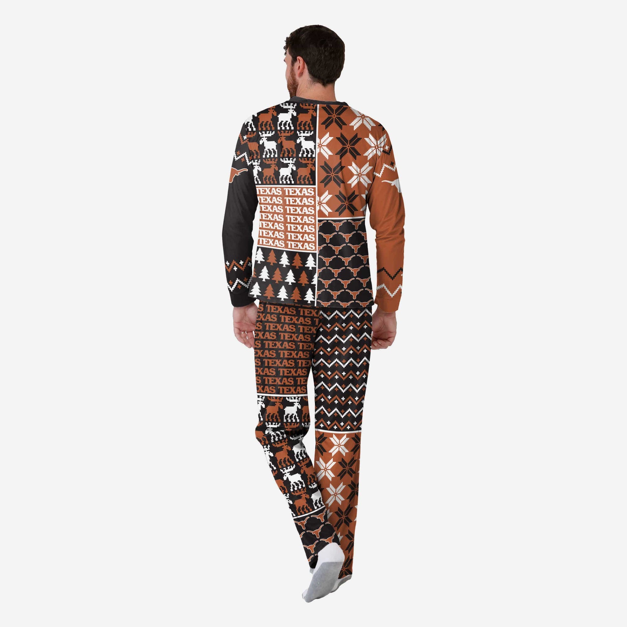 Get some matching family pajamas and dress to impress this holiday season! You won't want to miss these men's team pajamas! These men's PJ's are comfortable and show off your team spirit in the form of some sweet men's jammies. Introducing the Texas Longhorns Men's Busy Block Family Holiday Pajamas! Don't forget to take your holiday photo with the whole family wearing matching Christmas pajamas!