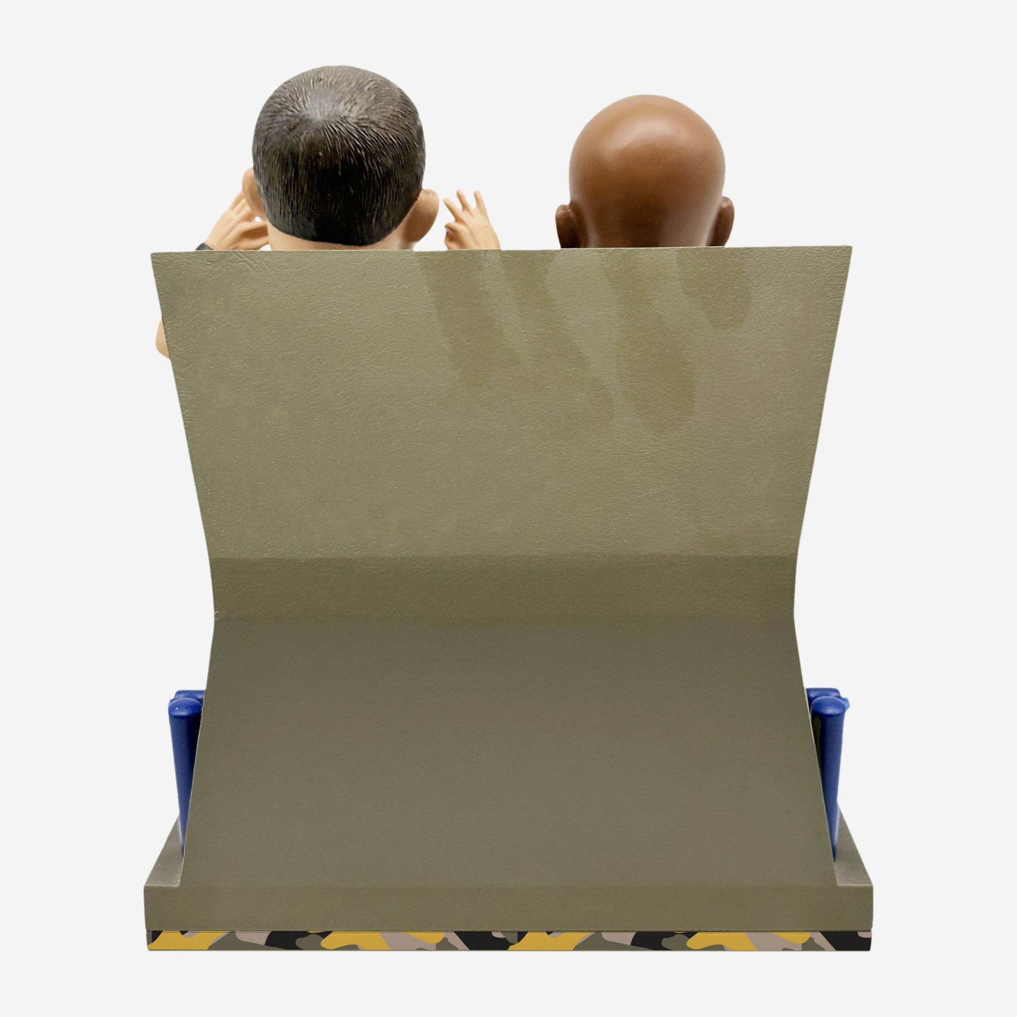 - Thematic camouflage pattern on backdrop and sides of base, matching this duo’s ring outfits