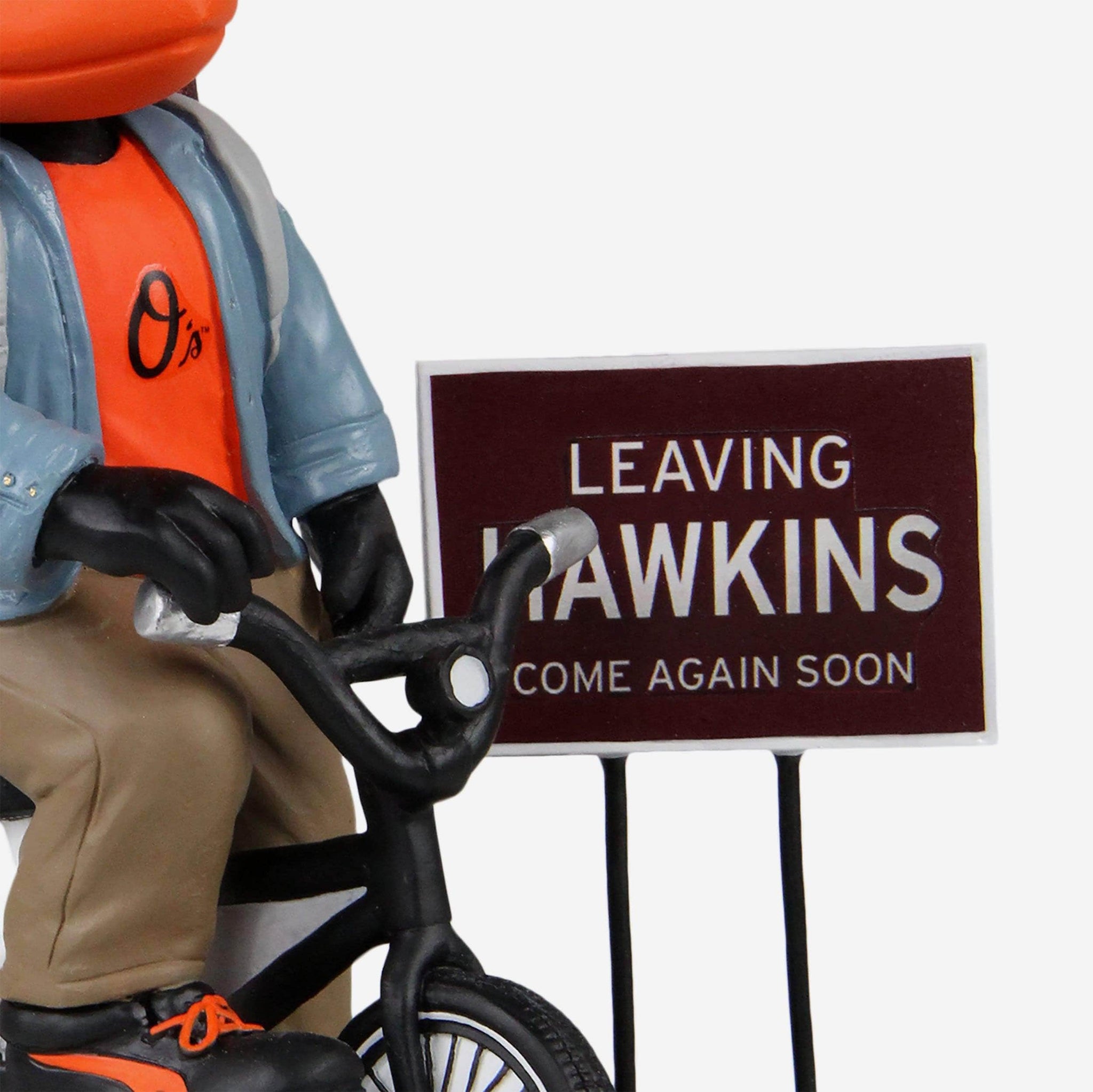 Welcome to Hawkins, Indiana. Home of the Stranger Things kids, and now, your favorite mascot. Get on your bicycle and join this The Oriole Bird Baltimore Orioles Stranger Things Mascot on Bike Bobblehead for an adventure. Just make sure you're home by dinner.
