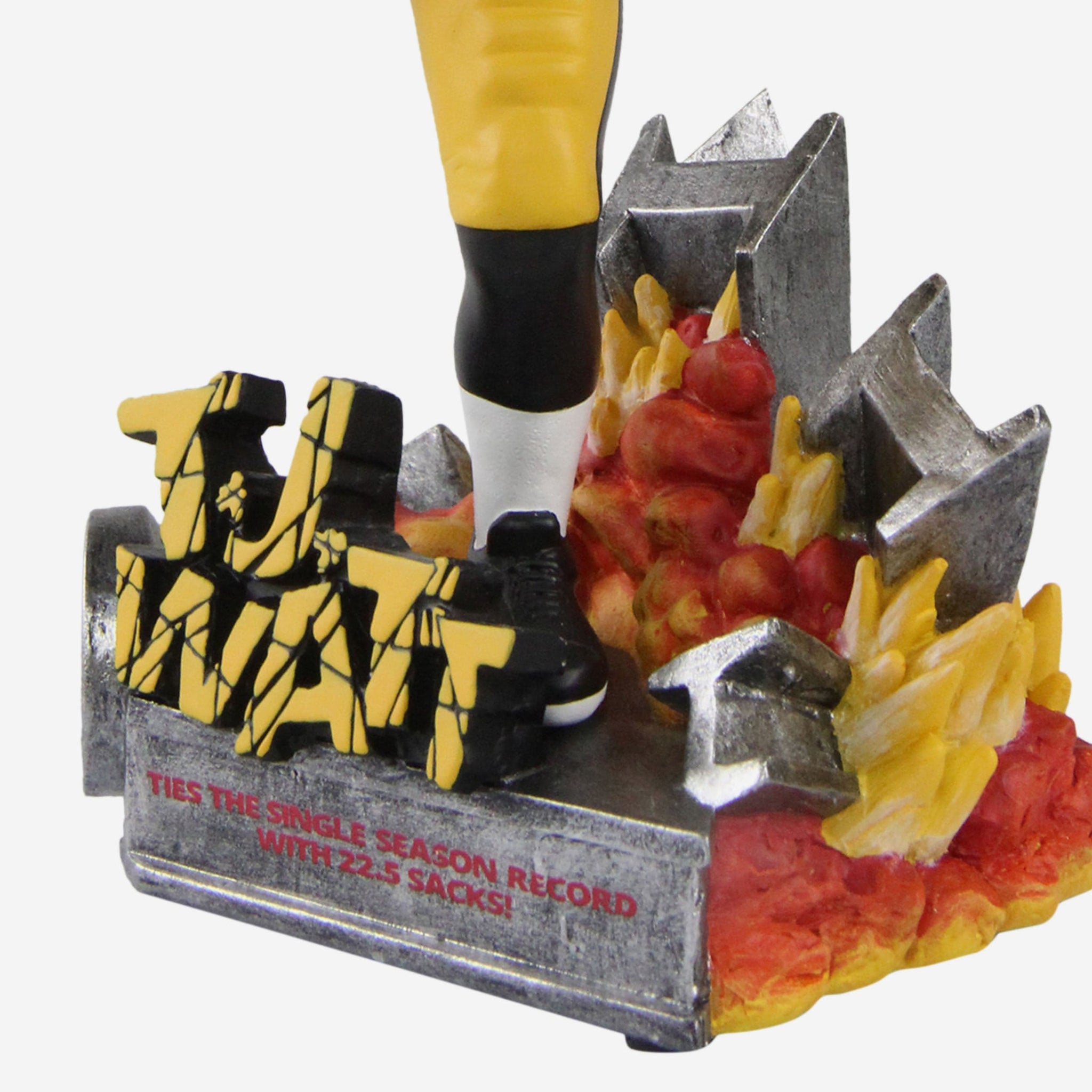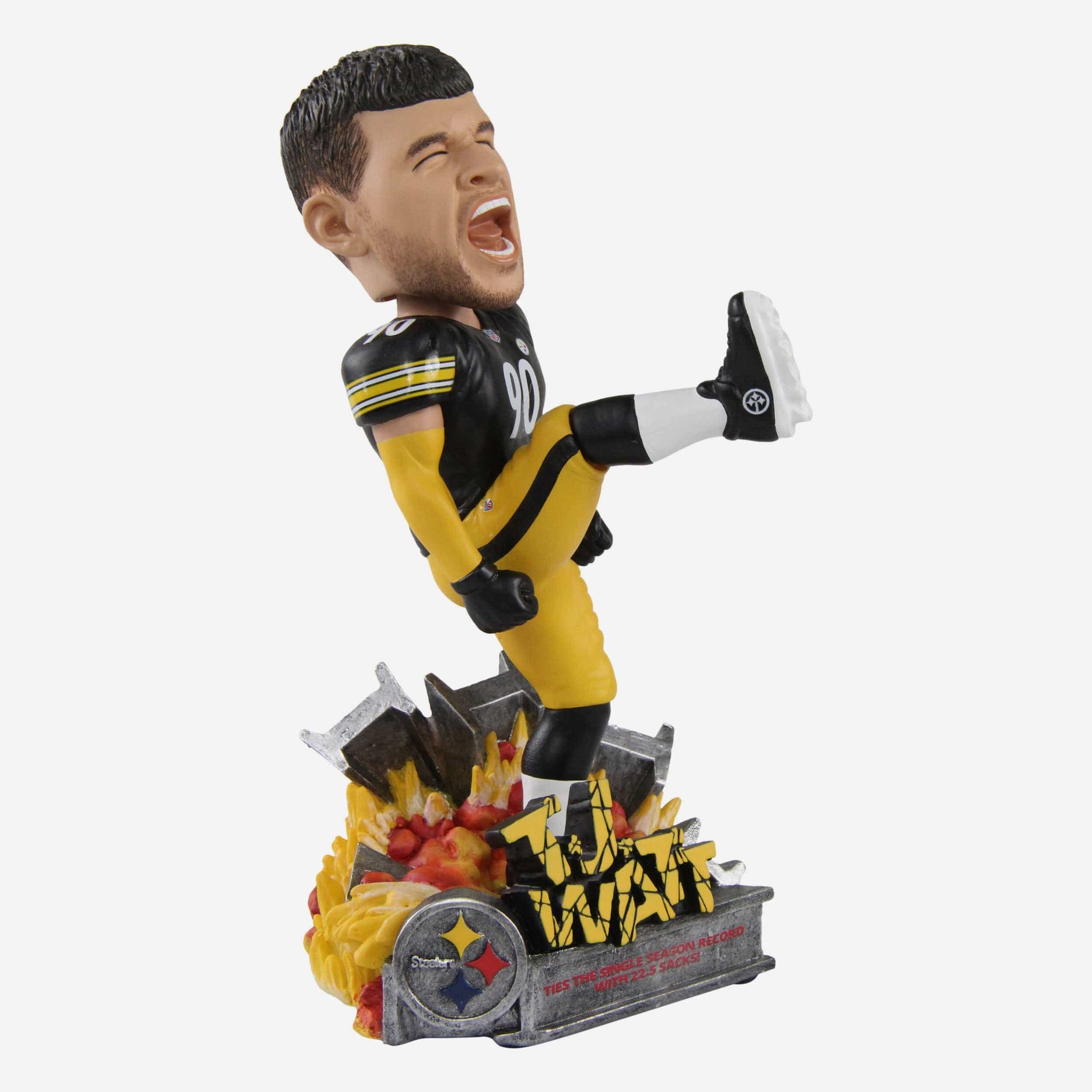 Steelers fans love him! Opposing QBs… not so much. 22.5 sacks led to one incredible season, and you can immortalize it by bringing the blitz to your bobble lineup with this TJ Watt Pittsburgh Steelers Gamebreaker Bobblehead.
